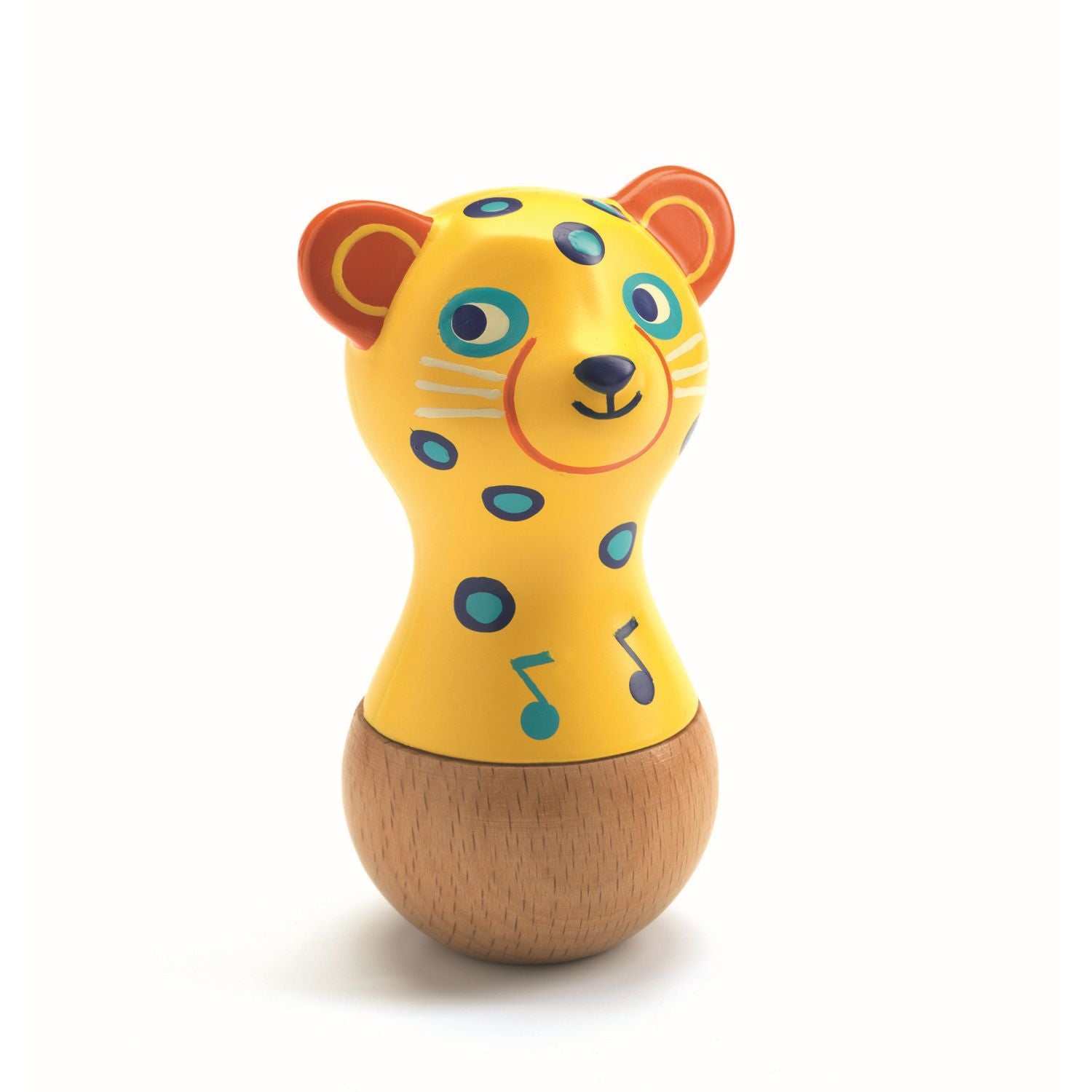 Mit den farbigen Maracas "Jaguar" DJ06021 von Djeco aus der Reihe Animambo kann man wunderbar im Takt rasseln.