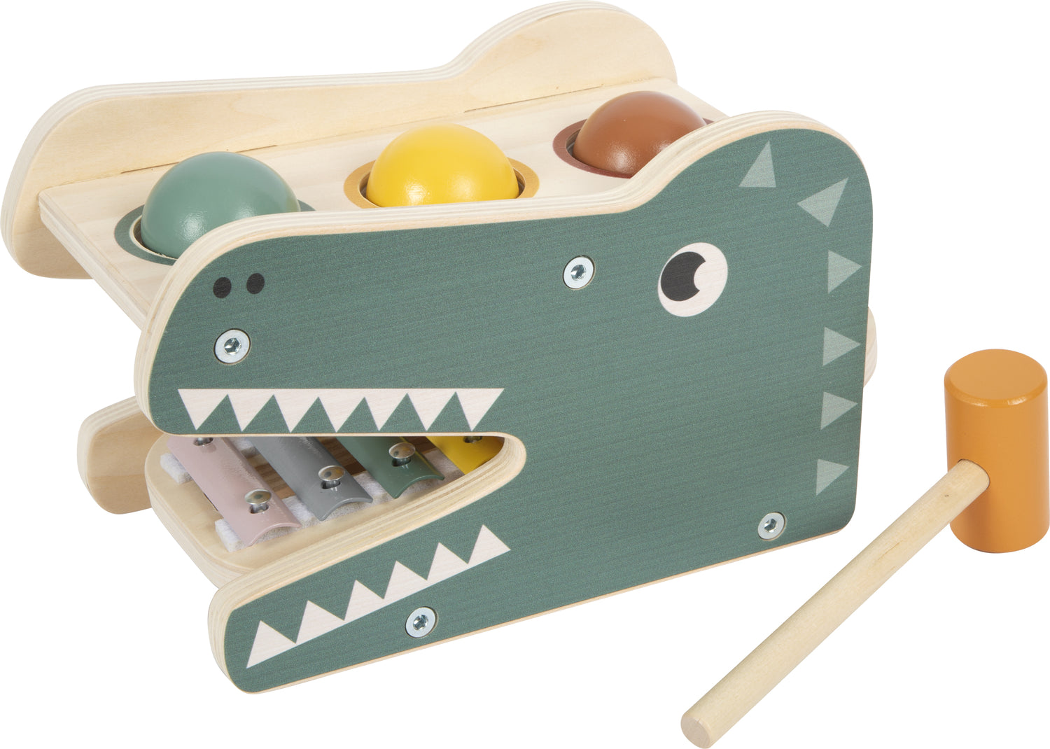 Dieses niedliche Krokodil aus robustem Holz macht als Klopfspiel mit integriertem Xylophon gleich doppelt Spaß.