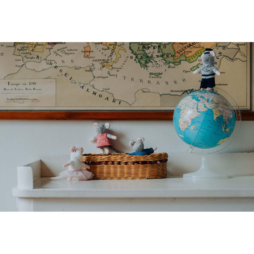 Spiele die Geschichten aus den Büchern mit den Kuscheltier Mäusen nach und nimm Opa Seemann überall mit hin. Welches Land wirst du ihm zeigen?