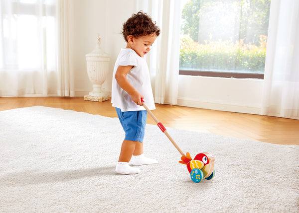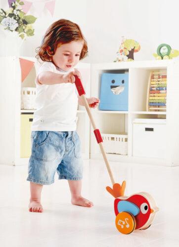 Der Schiebevogel Lilly unterstützt jeden kleinen Schatz bei den ersten Gehversuchen . Der kleine bunte Vogel von Hape ist aus Holz und spielt eine Melodie, wenn er bewegt wird. Somit unterstützt das Schiebespielzeug nicht nur das Laufen lernen, sondern gewinnt mit jedem Schritt die Aufmerksamkeit des Kindes. Die Räder des Schiebevogels Lilly sind mit einem Gummi überzogen und deshalb besonders leise.