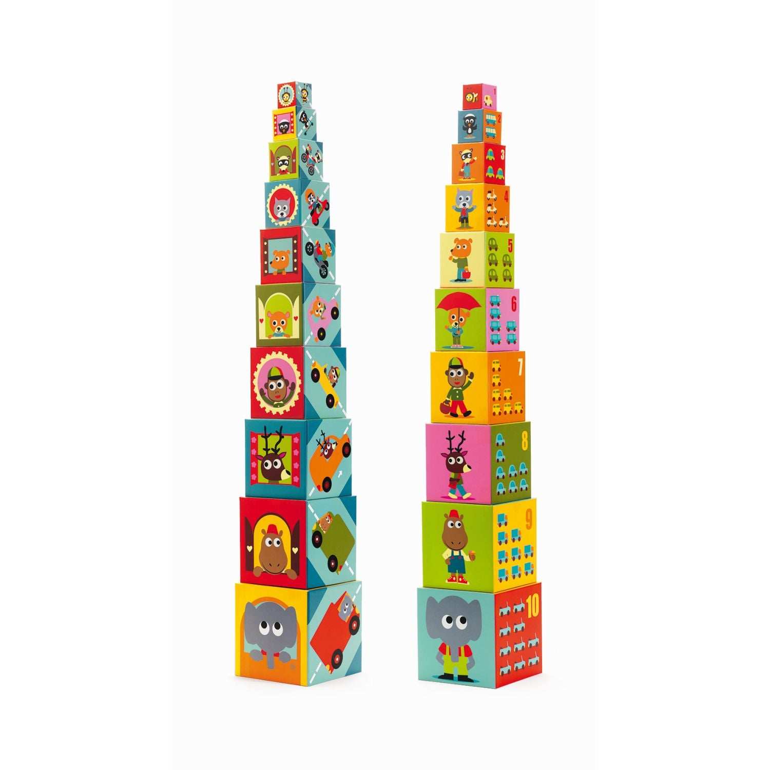 Mit den Stapel- Würfel von Djeco kann nach Herzenslust gebaut und gestapelt werden.