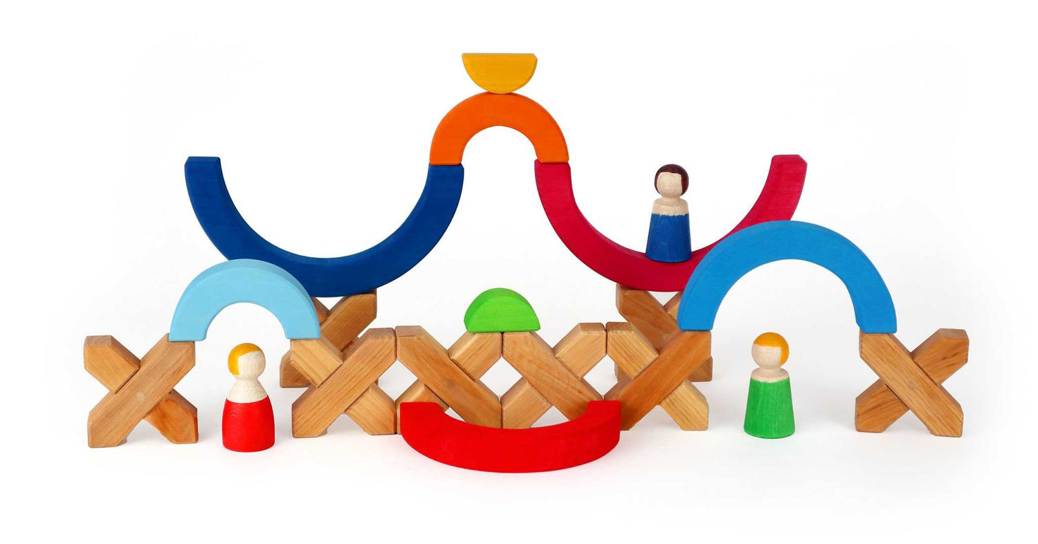 Die X-Klötze von Bauspiel sind unglaublich vielseitig einsetzbar. Das kleine Set mit 16 X-Bausteinen aus geöltem Erlenholz lässt sich zum Bauen und Konstruieren verwenden. Ob man damit Burgen und Schlösser baut, sie mit Glitzersteinen als Mandala legt oder die X-Klötze zum Beispiel als Untergrund und Fundament für kleine Bauwerke verwendet. Die Einsatz- und Kombinationsmöglichkeiten sind schier unendlich. Die X-Bausteine sind eine perfekte Ergänzung zu den Lichtbauwürfeln, zum Gitter-Baukasten und zum Plus-Baukasten. Ob zum einfachen Bauen und Spielen oder Dekorieren - die X-Klötze von Bauspiel werden immer wieder zum Einsatz kommen. Dieses kleine Set besteht aus 16 losen X-Klötzen aus geöltem und gedübeltem Erlenholz. Größe ca. 7 x 7 x 2,5 cm. Altersempfehlung ab 3 Jahre.