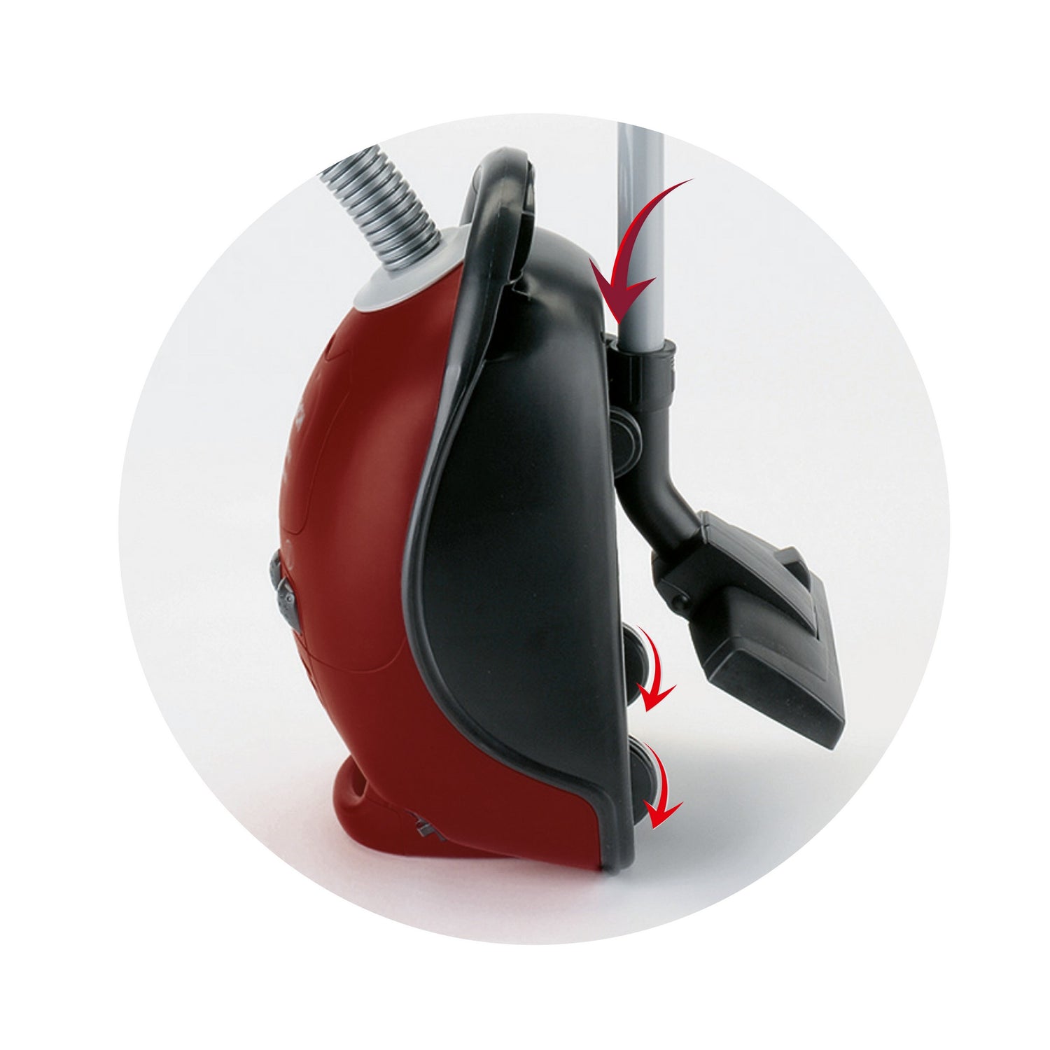 Mit seinem realistischen Sound beim Saugen, dem praktischen Tragegriff und dem An-/Ausschalter