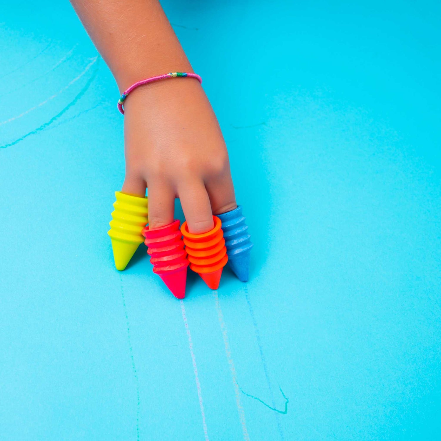 Die Finger-Wachsmaler von OMY sind eine großartige Möglichkeit für Kinder ab 3 Jahren, ihre künstlerischen Fähigkeiten zu entwickeln. Die Schachtel enthält 6 lustige und verspielte Maxi-Wachsmalstifte in Neon- und leuchtenden Farben, die perfekt für das erste künstlerische Projekt geeignet sind. Die ergonomische Form der Wachsmalstifte ermöglicht es den Kleinen, sie bequem auf die Finger zu legen und so das Zeichnen und Malen spielerisch zu erlernen.