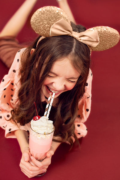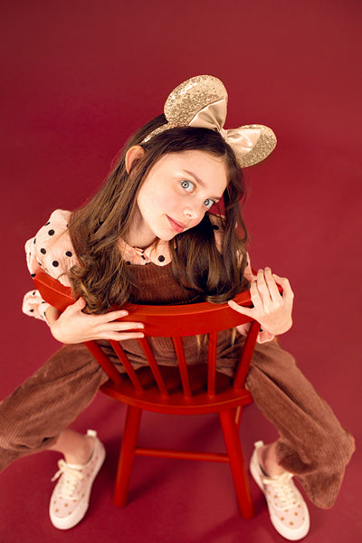 Maus-Haarreif in nude von Partydeco, besetzt mit funkelnden Pailletten.