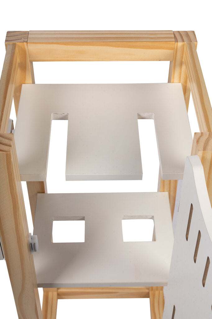 Der Stall besteht aus MDF und Holz Melamin und verfügt über mobile Einlegeböden, die individuell angepasst werden können. Die Stalltür kann einfach mit einem Magnetverschluss geöffnet und geschlossen werden. Mit einer Größe von 34 cm in der Länge, 32 cm in der Breite und 85 cm in der Höhe verwandelt dieser Stall das Kinderzimmer in einen lebendigen Reitstall.