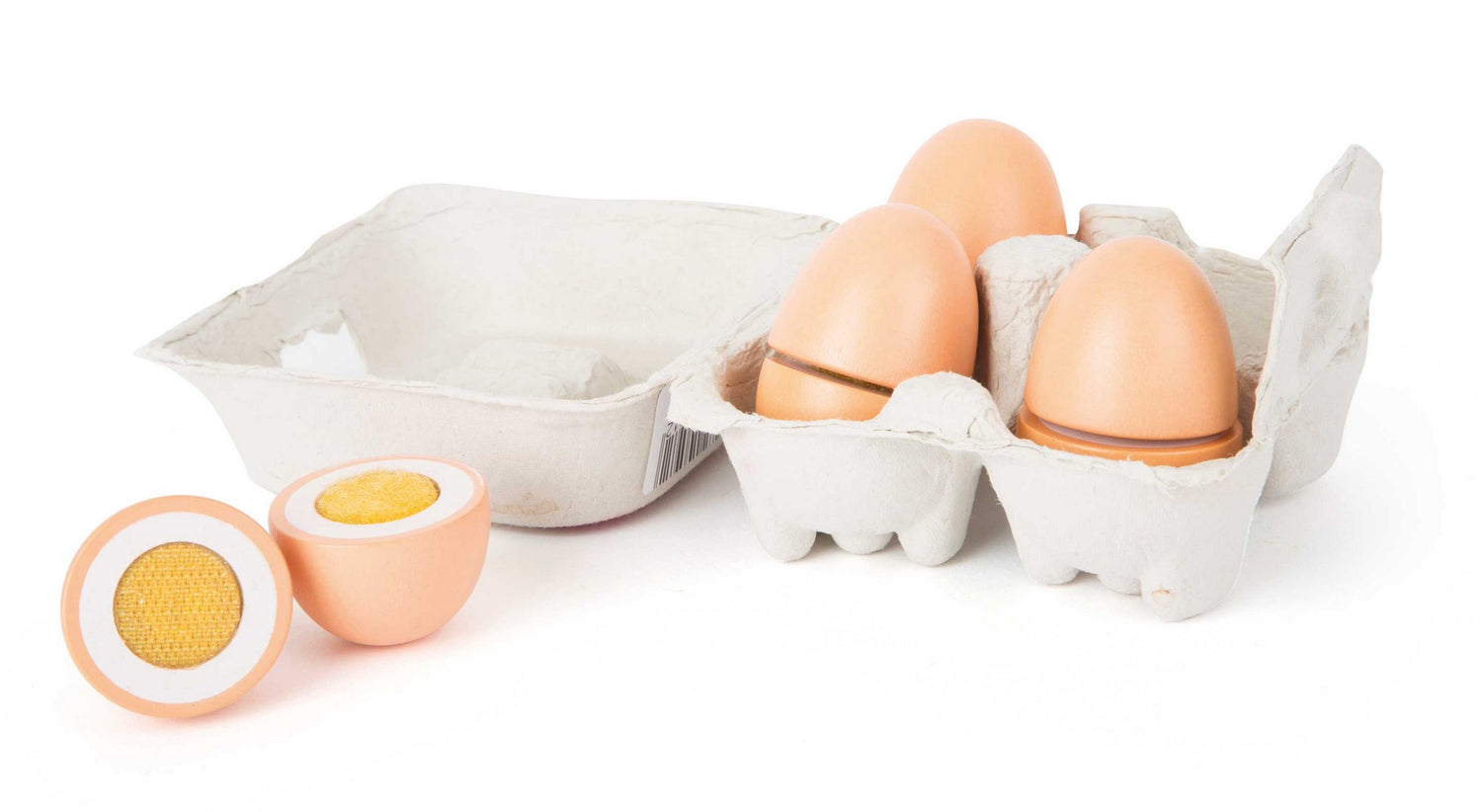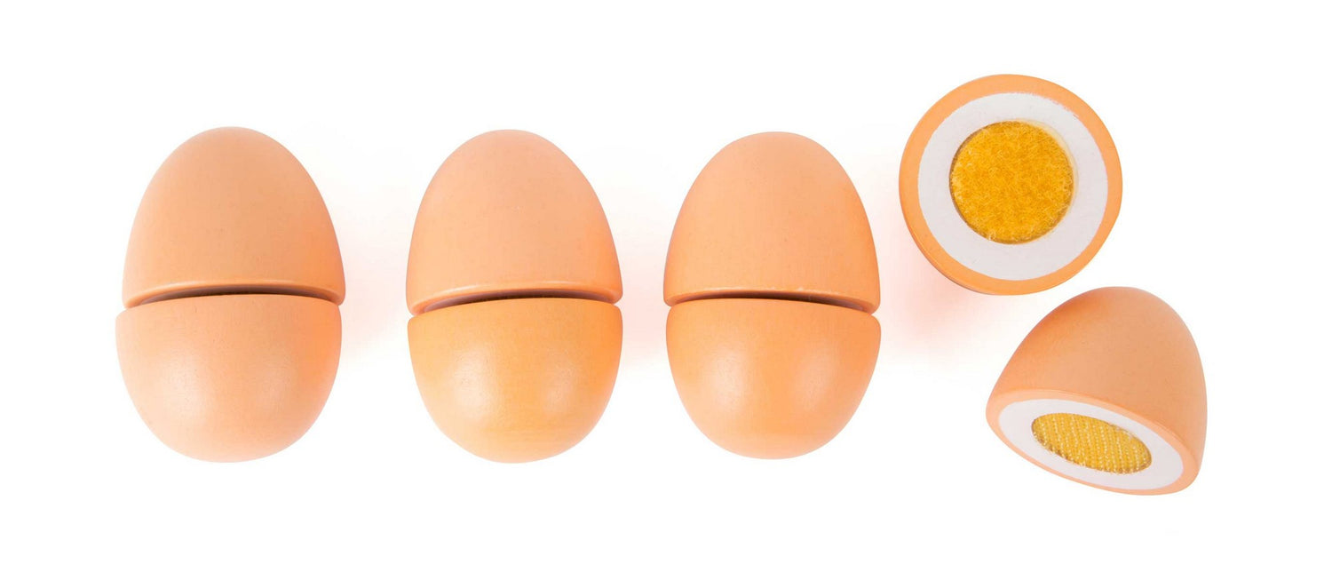 Dank des Klettverschlusses können die Eier in der Mitte geteilt werden und ermöglichen ein realistisches Spielvergnügen. Sie sind eine perfekte Ergänzung für die Spielküche und den Kaufmannsladen