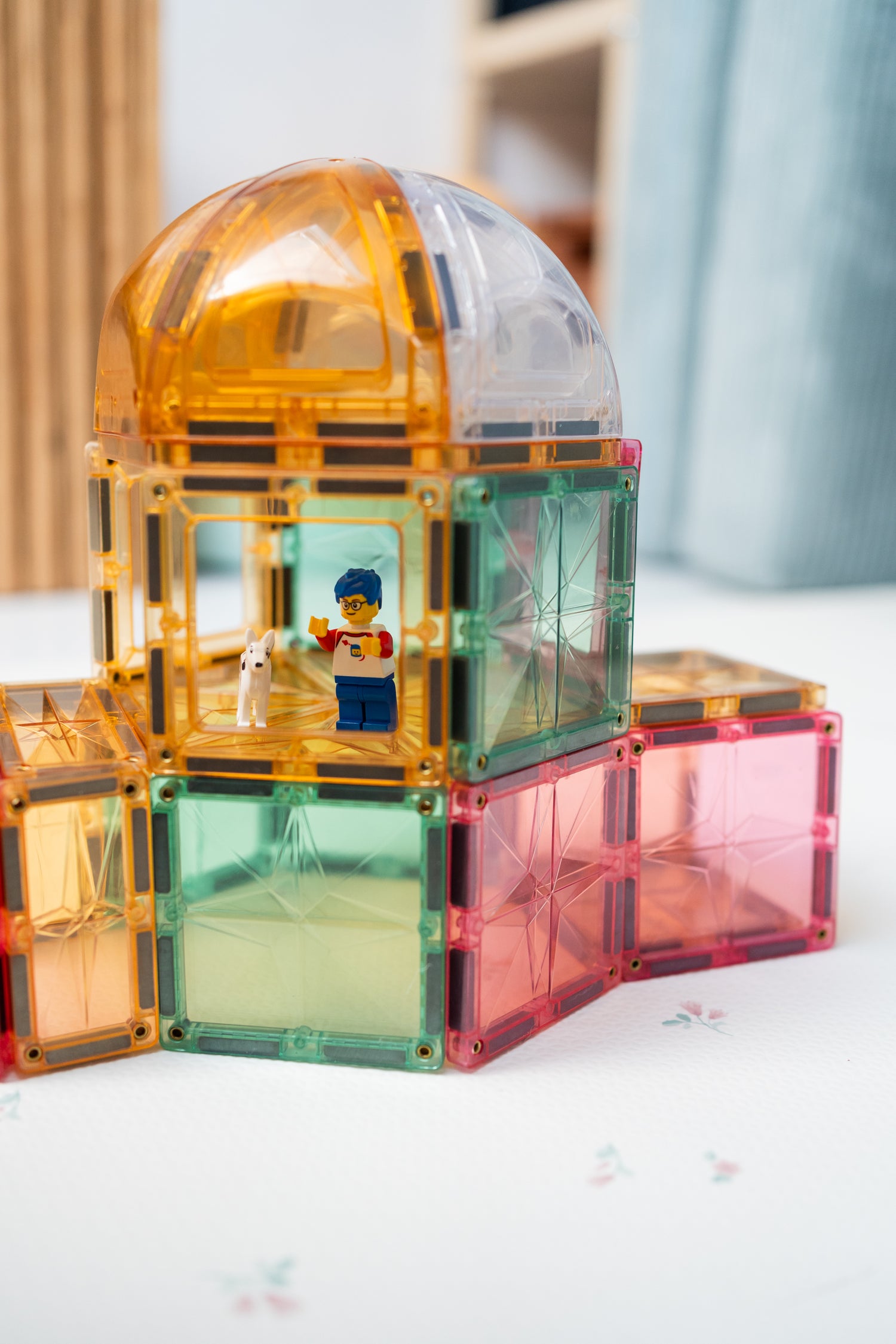 Die Magnetbausteine von Cleverclixx sind von hoher Qualität und enthalten starke Magnete, die für sicheren Spielspaß sorgen. Die bunten Reflexionen, die entstehen, wenn das Licht durch die Bausteine fällt, begeistern Kinder jeden Alters. Die robusten Bausteine eignen sich sowohl für 2D- als auch für 3D-Konstruktionen und bieten unendliche Möglichkeiten für kreative Bauwerke.