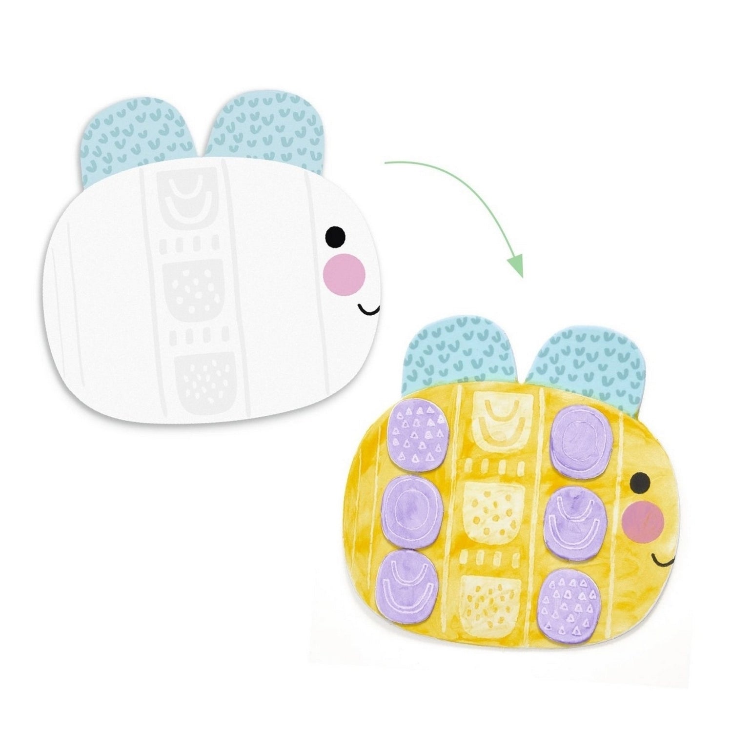 Einige Tropfen Farbe … um die Tiere mit den Fingern auszumalen. Kleine Motive erscheinen auf magische Weise! Mithilfe der Aufkleber kann das Kind die Tiere noch schöner gestalten!