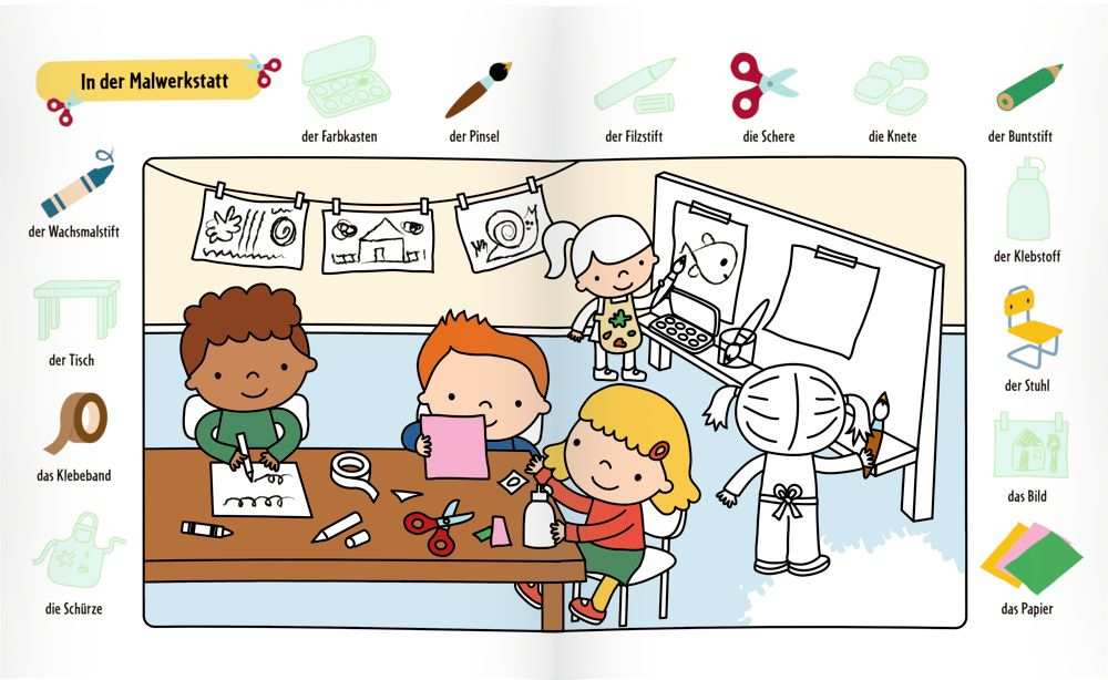 Dabei lernen sie wie mit einem Bildwörterbuch erste Wörter kennen.