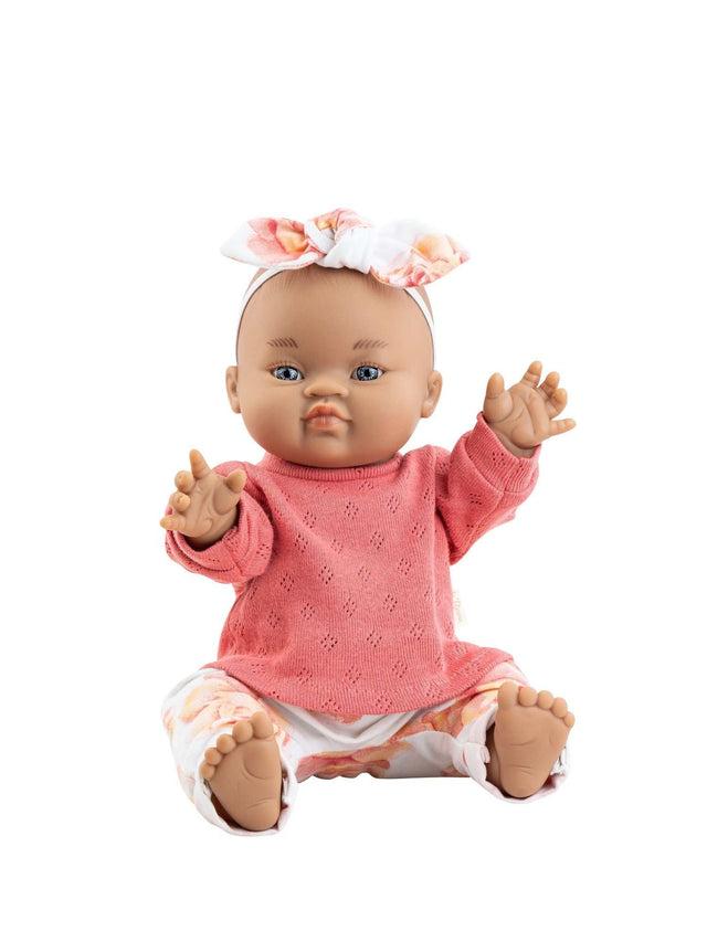 Die GORDI OLGA von Paola Reina ist eine sympathische und mollige Babypuppe. Sie hat ein ausgeprägtes Geschlecht und Falten auf der Haut. Sie ist vollständig aus angenehm weichem Vinyl gefertigt. Auf ihrem Köpfchen hat sie Schnitzereien, die an die kurzen Haare eines Neugeborenen erinnern. Sie hat bewegliche Arme, Beine und Kopf. Sie kann alleine sitzen. Ideal zum Spielen, Umziehen und Baden.