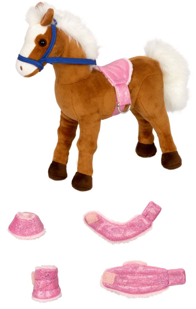 Das große Plüschtier bietet dank abnehmbarem Sattel sowie glitzernden Gamaschen und Hufglocken extra großen Spielspaß für kleine und große Pferdefreunde.