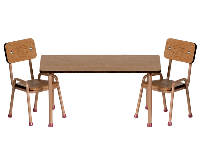 Die Tisch- und Stuhlgarnitur von Maileg ist speziell für das Mausloch Bauernhaus konzipiert. Sie besteht aus hochwertigem Buchenholz mit stabilen Metallbeinen. Besonders hervorzuheben sind die handgefertigten Farbdetails an den Füßen der Tisch- und Stuhlbeine, die dem Set eine besondere Note verleihen. Geliefert werden zwei Stühle, die perfekt zum Tisch passen.