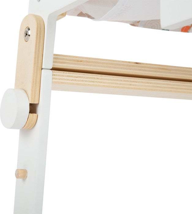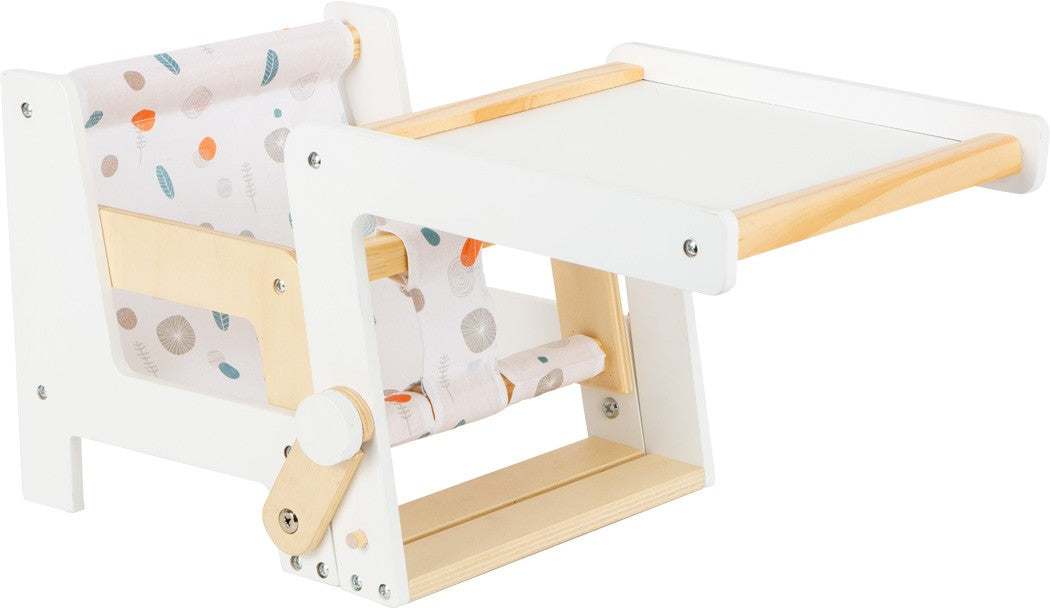 Kinderleicht kann der Hochstuhl zu einer Stuhl- Tisch- Kombination umgebaut werden.