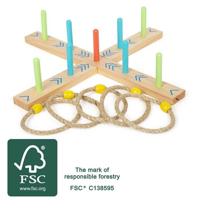 Hergestellt aus 100% zertifiziertem Holz, mit besonders griffigen, geflochtenen Wurfringen.