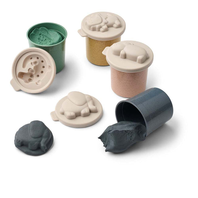 Die Deckel des Sets bieten vielfältige Gestaltungsmöglichkeiten: Sie können als Stempel oder Formen genutzt werden, um die Kreativität der Kinder anzuregen. Das Liewood Knet-Set Rollie ist sowohl CE- als auch CA-zertifiziert, was seine Sicherheit und Eignung für Kinder bestätigt.