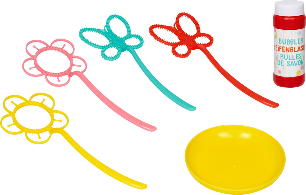 Was gibt es im Sommer schöneres als bunt-funkelnde Seifenblasen? Das Set von Coppenrath besteht aus einer Flasche mit Seifenblasenflüssigkeit (60 ml), einem Schälchen und 4 Pustestäbchen in Blumen- sowie Schmetterlingsform. Einfach Seifenlauge einfüllen und los gehts! Eine süße Geschenkidee im Sommer.