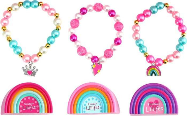 Legt man den Regenbogen ins Wasser, löst sich eine Hälfte auf und gibt ein buntes Armband mit einem entzückenden Anhänger frei.