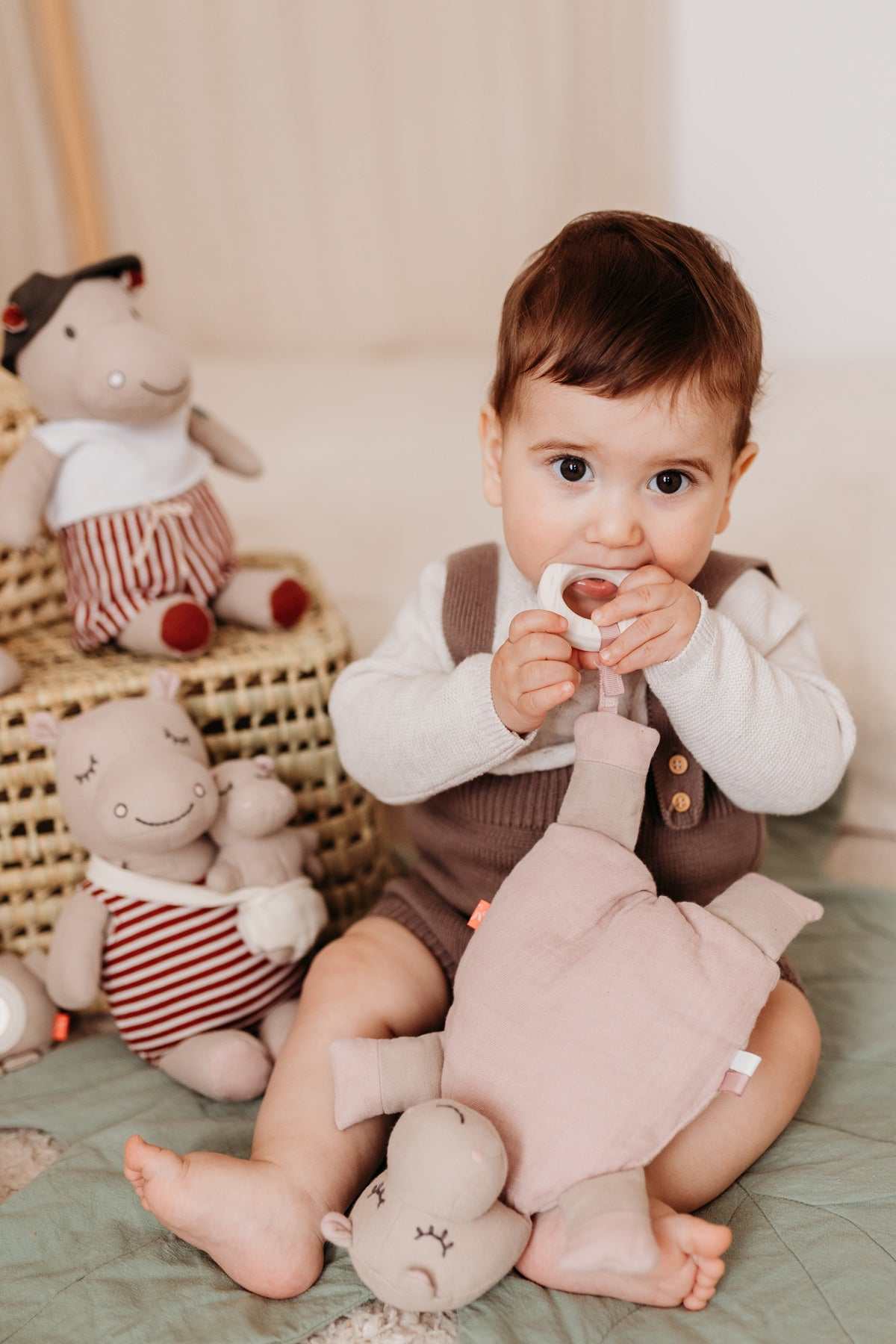Der Beißring hilft beim Zahnen, und das knisternde Element am Fuß ermutigt Babys, es zu erforschen.