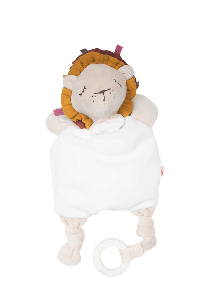 Rund um den Löwenkopf befindet sich eine auffällige Löwenmähne mit vielen bunten Schlaufen, an denen Ihr Baby gerne mit seinen Fingern spielen wird.
