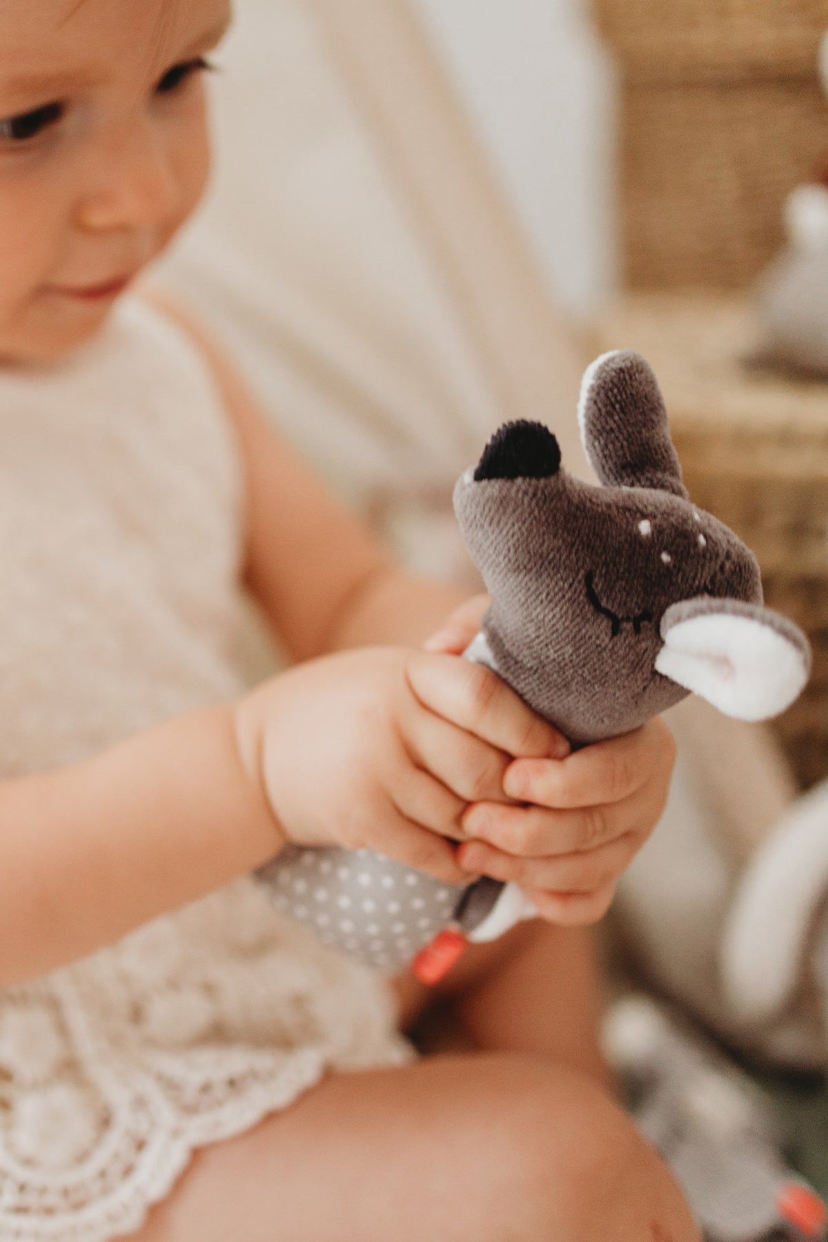 Der Quietscher Rehkitz von Kikadu, mit seinen bunten Details aus verschiedenen ökologischen Materialien bereitet den Kleinen viel Freude und Unterhaltung.