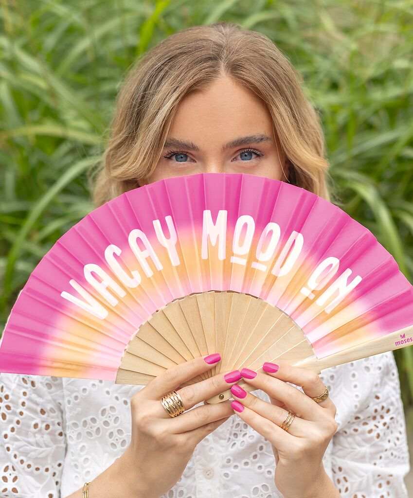 Ob im Urlaub, auf Festivals oder im Alltag – dieser leichte und kompakte Fächer ist der perfekte Begleiter für heiße Tage. Mit einem trendigen Spruch („Stay cool, look hot“, „Pretty hot“ oder „Vacay mood on)“ bringt er nicht nur Abkühlung, sondern auch gute Laune.