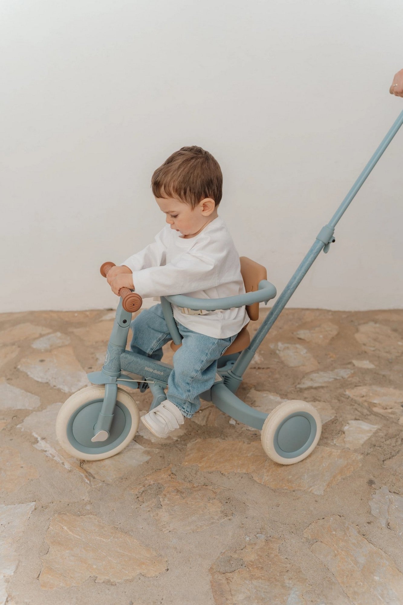 Mit diesem stilvollen 4-in-1 Dreirad von Little Dutch steht den ersten (Fahr-)Abenteuern nichts mehr im Weg. Die Kleinen können eigenständig Ihre Umgebung erkunden. Sollte doch mal Hilfe nötig sein, hilft der Griff den Eltern dabei, die Kleinen bei der Fahrt zu unterstützen. Sicherheit hat oberste Priorität, dank des Sicherheitsgurts und -rings, die sich ganz einfach entfernen lassen, wenn sie nicht mehr benötigt werden. Von Dreirad zu Laufrad im Handumdrehen – und die Pedale? Die lassen sich clever unter dem Sattel verstauen! Leicht, kompakt und verstellbar für Kinder von 1 bis ca. 3 Jahren. Farbe: blau Artikel: LD6080 Material: Metall, Kunststoff Altersempfehlung: 1 - 3 Jahren