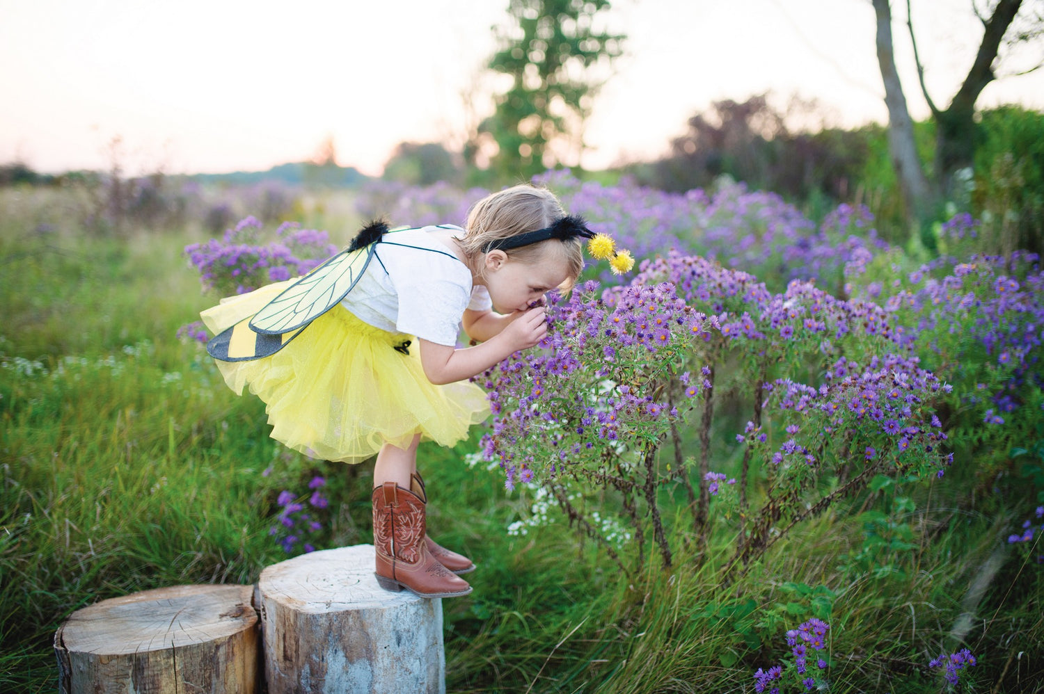 Zum Schluss noch die vierteiligen Flügel auf den Rücken und schon kann die Biene durch den Himmel fliegen.