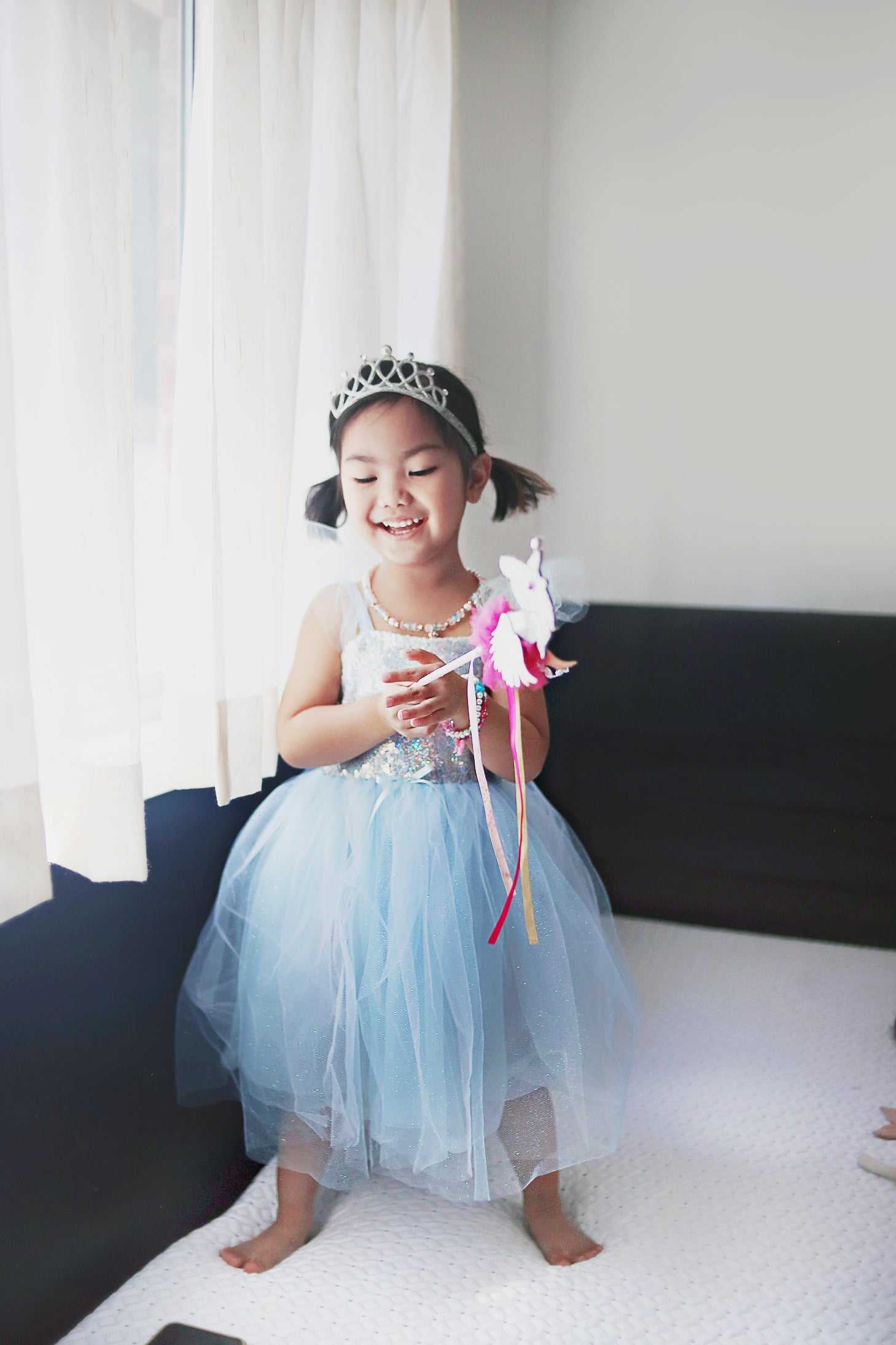Dieses blaue Prinzessinnen- Kleid ist der absolute Kindertraum.