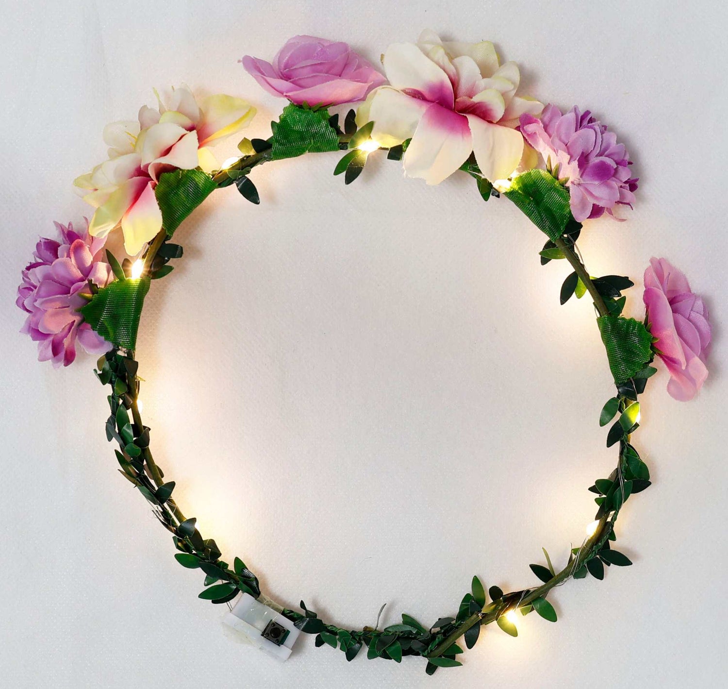 Der Blüten- Haarkranz mit Licht von Fun Trading ist ein perfektes Accessoire für Geburtstage, Halloween, Sommer- und Faschingspartys.