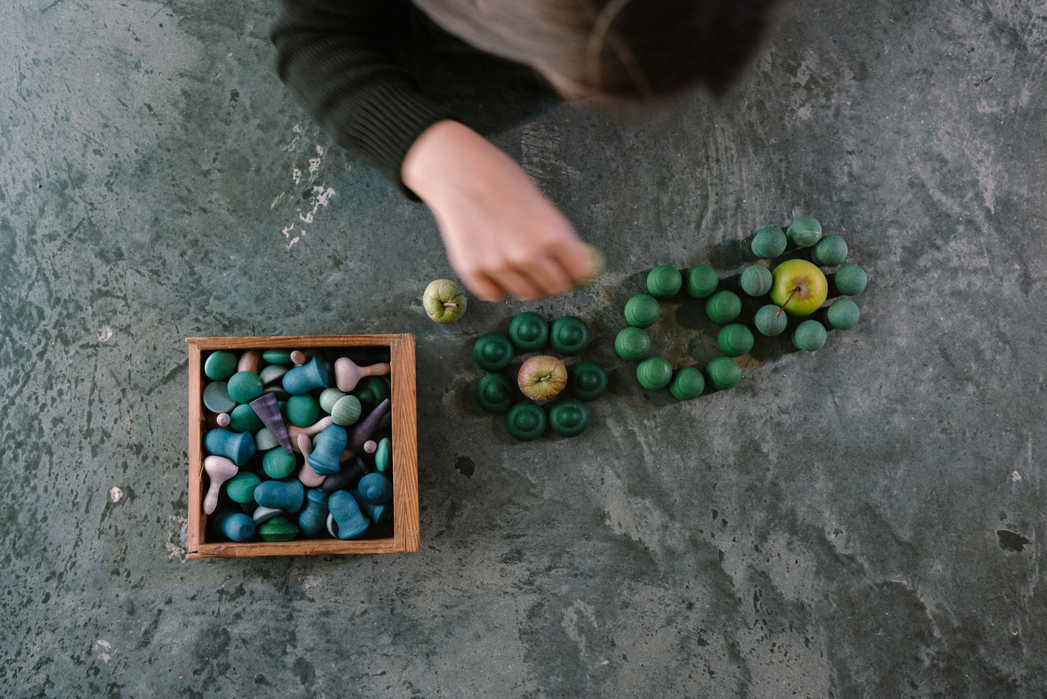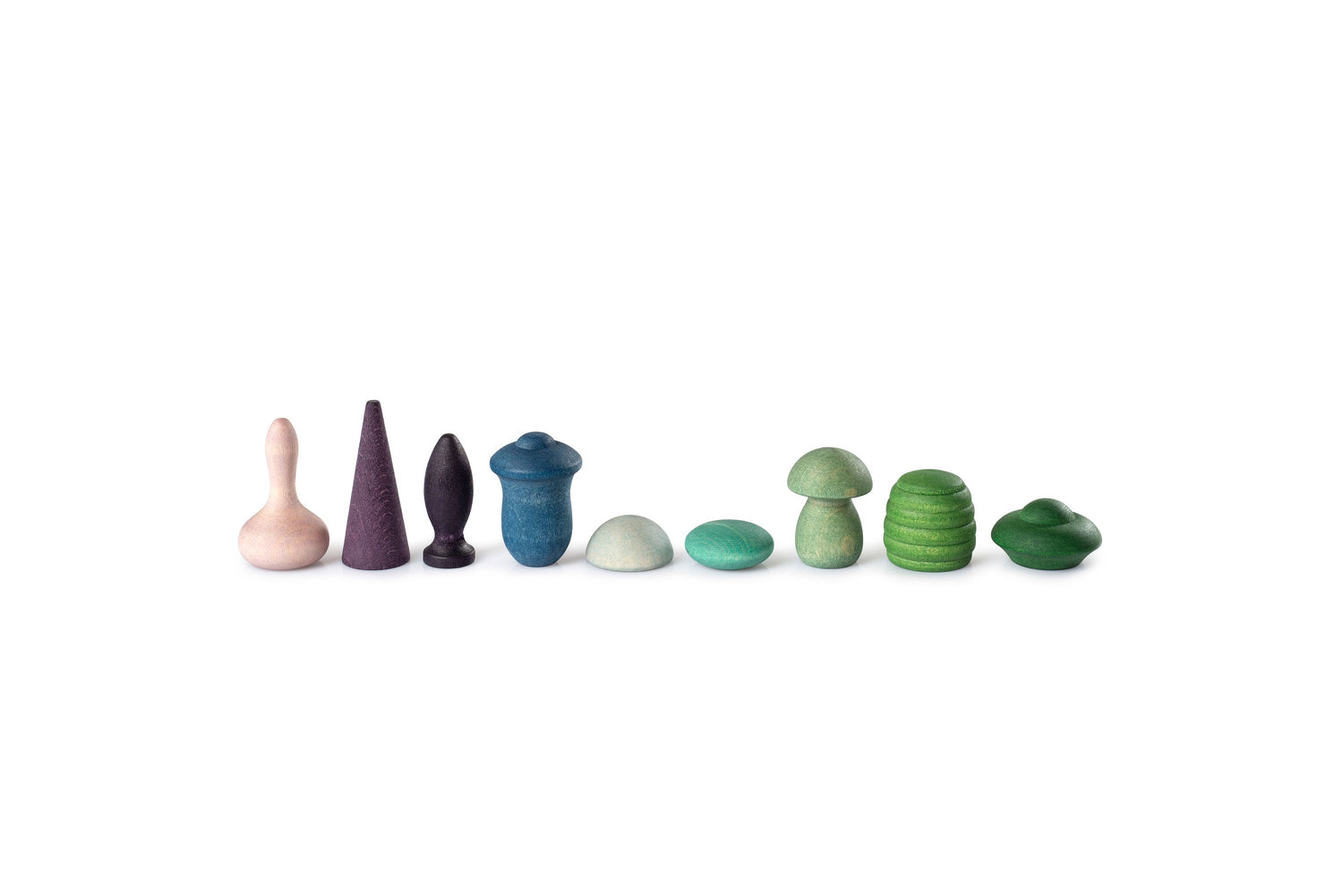 Der Grapat Cold Mandala Mix ist ein harmonisches Mandala-Set aus Holz, das Gelassenheit und Achtsamkeit in jedes Spiel bringt. Das Mandala-Set von Grapat mit 81 kleinen Holzteilen ist ein äußerst vielseitiges Holzspielzeug. Sanfte Blautöne, ruhige Grüntöne und zartes Violett verschmelzen zu einer kühlen, beruhigenden Farbwelt, die zum Entdecken, Kombinieren und Innehalten einlädt. Die Grapat-Mandalas sind so konzipiert, dass sie ein intensives Sinneserlebnis ermöglichen: Durch das Greifen, Fühlen, Kombinieren und Arrangieren farbiger Elemente werden die Feinmotorik und die Aufmerksamkeit geschult. Der „Cold Mandala Mix“ gehört zur „KIDS-ONLY“-Kollektion von Grapat. Es besteht aus hochwertigem, schadstofffreiem Holz, das mit ungiftigen, wasserbasierten Farben behandelt wurde. Die reduzierte und vielseitige Gestaltung lädt Kinder dazu ein, die Teile frei umzudeuten. Erwachsene sind dabei Begleiter und keine Regisseure. Somit fördert das Set offenes, selbst bestimmtes Spiel nach pädagogischen Prinzipien wie Montessori und Waldorf und schafft Raum für langanhaltende, kreative Lernmomente. *81 Holzteile *9 verschiedene Formen *9 harmonisch abgestimmte Farben *Höhen von ca. 10 mm bis 45 mm *ab 3 Jahren