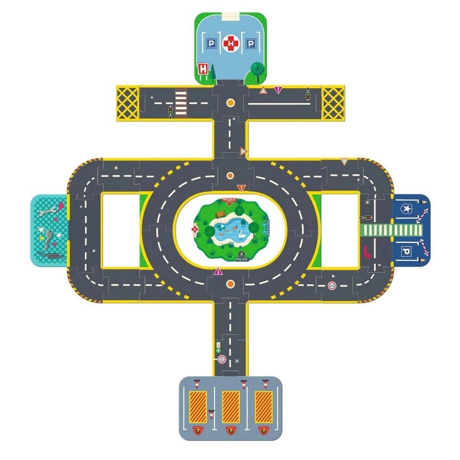 Das Crazy Motors Bodenpuzzle Stadt von Djeco ist ein innovatives Spielzeug, das Kinder ab 3 Jahren begeistern wird. Mit insgesamt 27 Bodenpuzzle-Teilen und 6 Dekorelementen auf Holzsockeln können Kinder eine riesige Rennstadt bauen und dabei ihrer Fantasie freien Lauf lassen. Die Stadt besteht aus verschiedenen Gebäuden wie einem Krankenhaus, einer Polizeiwache, einer Werkstatt und einer Feuerwache, die mit den Dekorelementen realistisch gestaltet sind. Zwei Torbögen vervollständigen das Stadtbild und bieten zusätzliche Spielmöglichkeiten. Durch die Vielzahl an Puzzle-Teilen können Kinder verschiedene Streckenverläufe bauen und mit den Fahrzeugen der Crazy Motors Serie spannende Abenteuer erleben. Das Puzzle ist zudem kompatibel mit anderen Rennstrecken und Puzzles der Serie, was für noch mehr kreative Spielmöglichkeiten sorgt. Die Teile des Puzzles sind groß und stabil, aus bedrucktem Karton gefertigt und lassen sich einfach zusammensetzen. Die Dekorelemente auf Holzsockeln verleihen dem Spiel eine hochwertige Optik und sorgen für langanhaltenden Spielspaß. Die Produktgröße beträgt 25 x 18 x 9 cm, während die Verpackungsgröße 29 x 25,5 x 8 cm beträgt. Es wird empfohlen, das Spielzeug unter Aufsicht von Erwachsenen zu verwenden und es nicht für Kinder unter 3 Jahren geeignet ist, da Kleinteile verschluckt werden könnten. Das Crazy Motors Bodenpuzzle Stadt ist ein ideales Geschenk für Kinder, die gerne puzzeln, kreativ spielen und spannende Geschichten erfinden. Es fördert die Feinmotorik, die Fantasie und die kognitive Entwicklung der Kinder und bietet stundenlangen Spielspaß. Tauchen Sie ein in die Welt der Crazy Motors und erleben Sie unvergessliche Abenteuer in der Rennstadt!