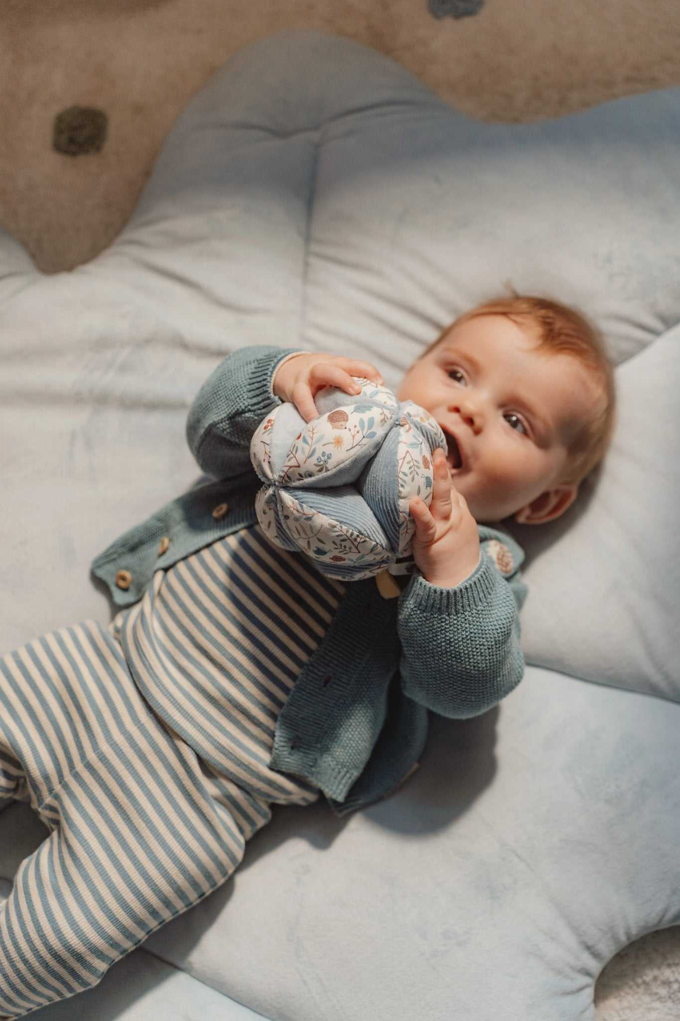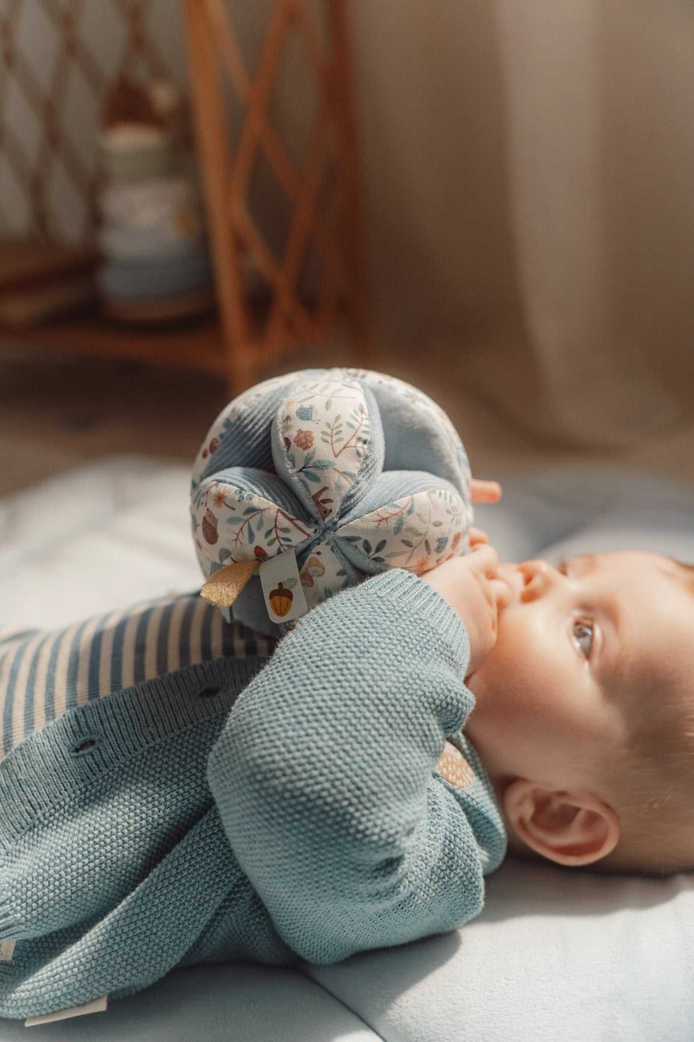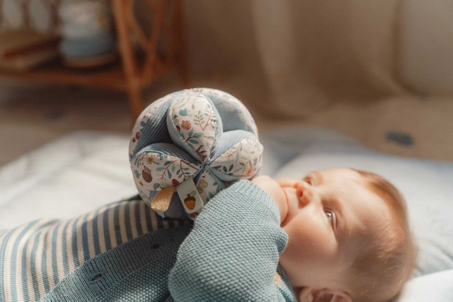 Der Greifball aus der Forest Friends Kollektion von Little Dutch ist ein Spielzeug, das die Sinne Ihres Babys anregt und seine Greiffähigkeit fördert. Mit seiner interessanten Form und den verschiedenen Texturen und Mustern bietet er Ihrem Kind eine Vielzahl von Möglichkeiten zum Greifen und Erforschen. Der Greifball ist speziell für kleine Hände konzipiert und lässt sich leicht greifen. Wenn er bewegt wird, erzeugt die Glockenrassel ein fröhliches Geräusch, das Ihr Baby sicherlich begeistern wird. Das süße Dekor von Forest Friends, die leicht zu greifenden Knoten und die verschiedenen Etiketten regen die Sinne Ihres Babys an und sorgen dafür, dass es sich im Laufstall gut beschäftigt fühlt. Hergestellt ist der Greifball aus 100% Polyester, was ihn weich und angenehm in der Handhabung macht. Mit Maßen von 12 x 12 x 12 cm ist er handlich und leicht zu transportieren, sodass Ihr Baby ihn überallhin mitnehmen kann. Der Greifball aus der Forest Friends Kollektion ist nicht nur ein unterhaltsames Spielzeug, sondern auch ein pädagogisches Werkzeug, das die motorischen Fähigkeiten Ihres Kindes fördert. Durch das Greifen, Tasten und Entdecken lernt Ihr Baby spielerisch neue Dinge und entwickelt seine Feinmotorik. Greifen Sie zu und gönnen Sie Ihrem Kind diesen tollen Greifball aus der Forest Friends Kollektion von Little Dutch. Mit seinen vielfältigen Möglichkeiten zum Greifen und Erforschen wird er sicherlich ein beliebtes Spielzeug bei Ihrem Baby sein. Sorgen Sie für Spaß und Förderung zugleich und lassen Sie Ihr Kind die Welt mit diesem Greifball entdecken.