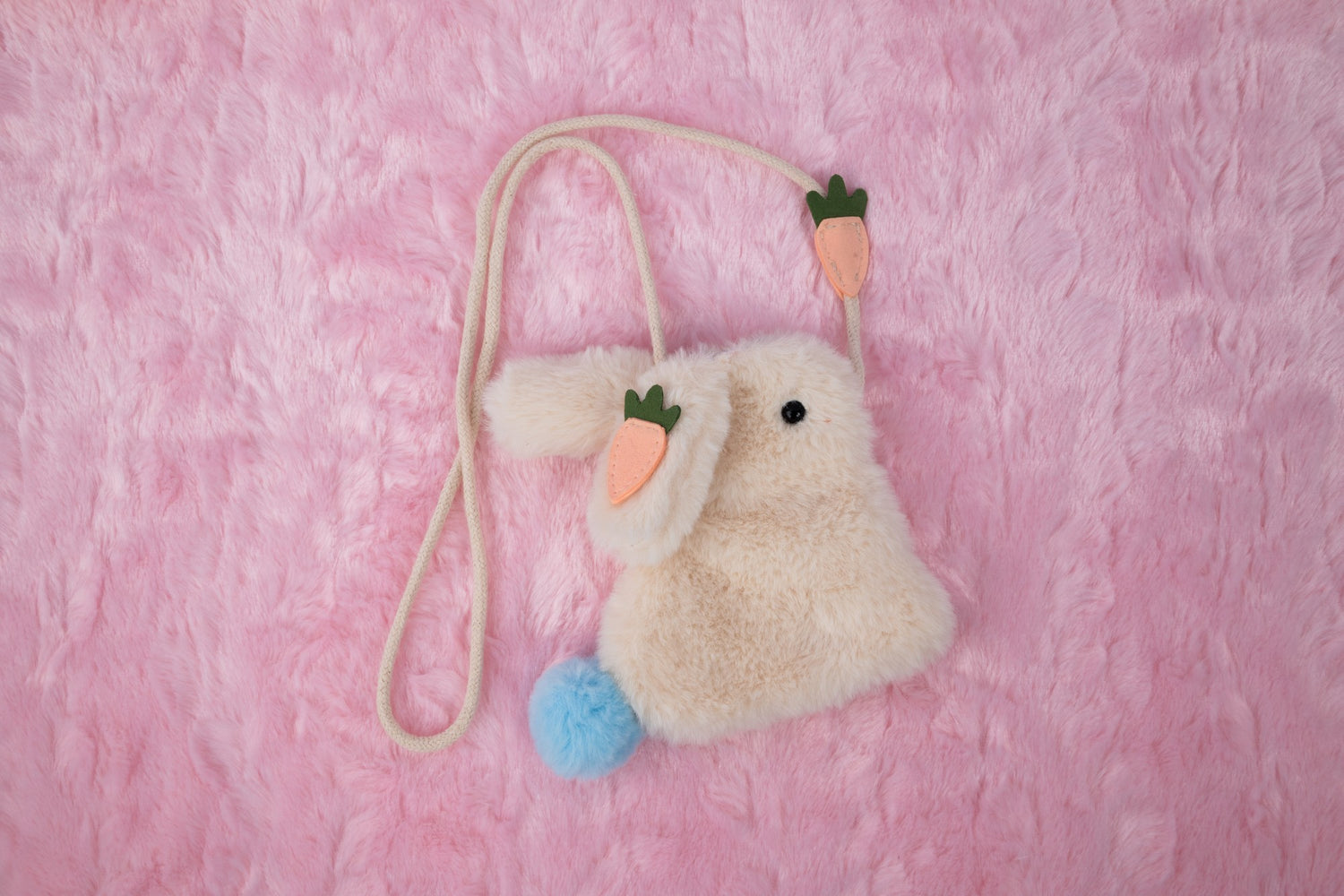 Die bezaubernde Tasche in Form eines niedlichen Hasen hat eine süße Filzkarotte am langen Riemen, die für einen verspielten Touch sorgt.