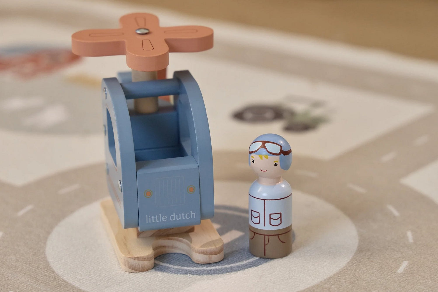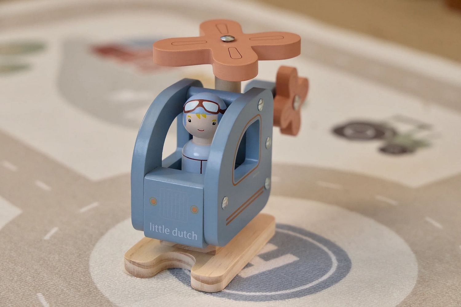 Der Little Dutch Holzhubschrauber ist ein wunderschön gestalteter Spielzeughubschrauber, der die Fantasie von Kindern perfekt anregt. Hergestellt aus robustem Holz und in den typischen sanften Farben von Little Dutch gehalten,
