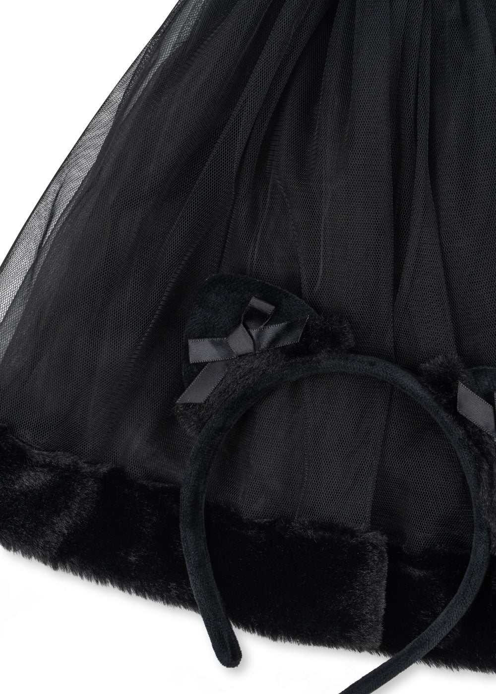 Das süße Halloween-Katzenkostüm von Konges Slojd ist ein absoluter Hingucker für kleine Katzenliebhaber ab 5 Jahren. Das Kostüm besteht aus einem schwarzen Tüllrock mit elastischem Bund, der bequem zu tragen ist und für optimale Bewegungsfreiheit sorgt. Dazu gehört auch ein Stirnband mit niedlichen Katzenohren, das das Kostüm perfekt abrundet.