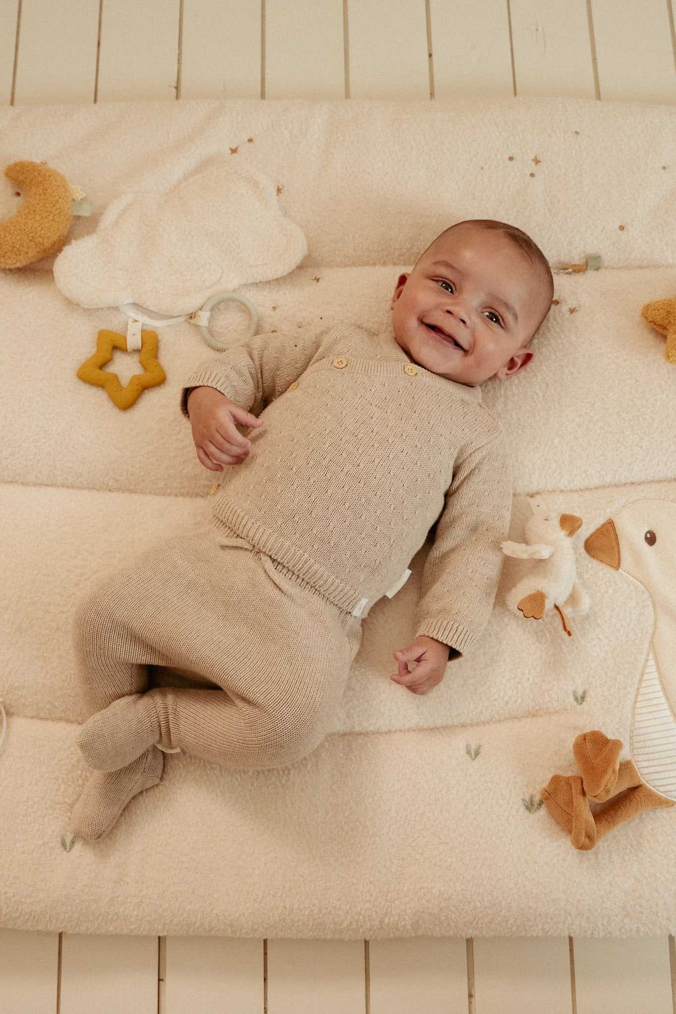 Die Spiel- und Krabbeldecke Newborn Naturals von Little Dutch ist ein weicher und gemütlicher Spielplatz für kleine Entdecker ab 0+ Monaten. Hergestellt aus hochwertigen und weichen Stoffen in dezenten, natürlichen Farbtönen, passt sie perfekt in jedes Babyzimmer. Mit den Maßen 80 x 100 x 3 cm bietet sie ausreichend Platz zum Spielen, Rollen und Entspannen im Laufgitter.