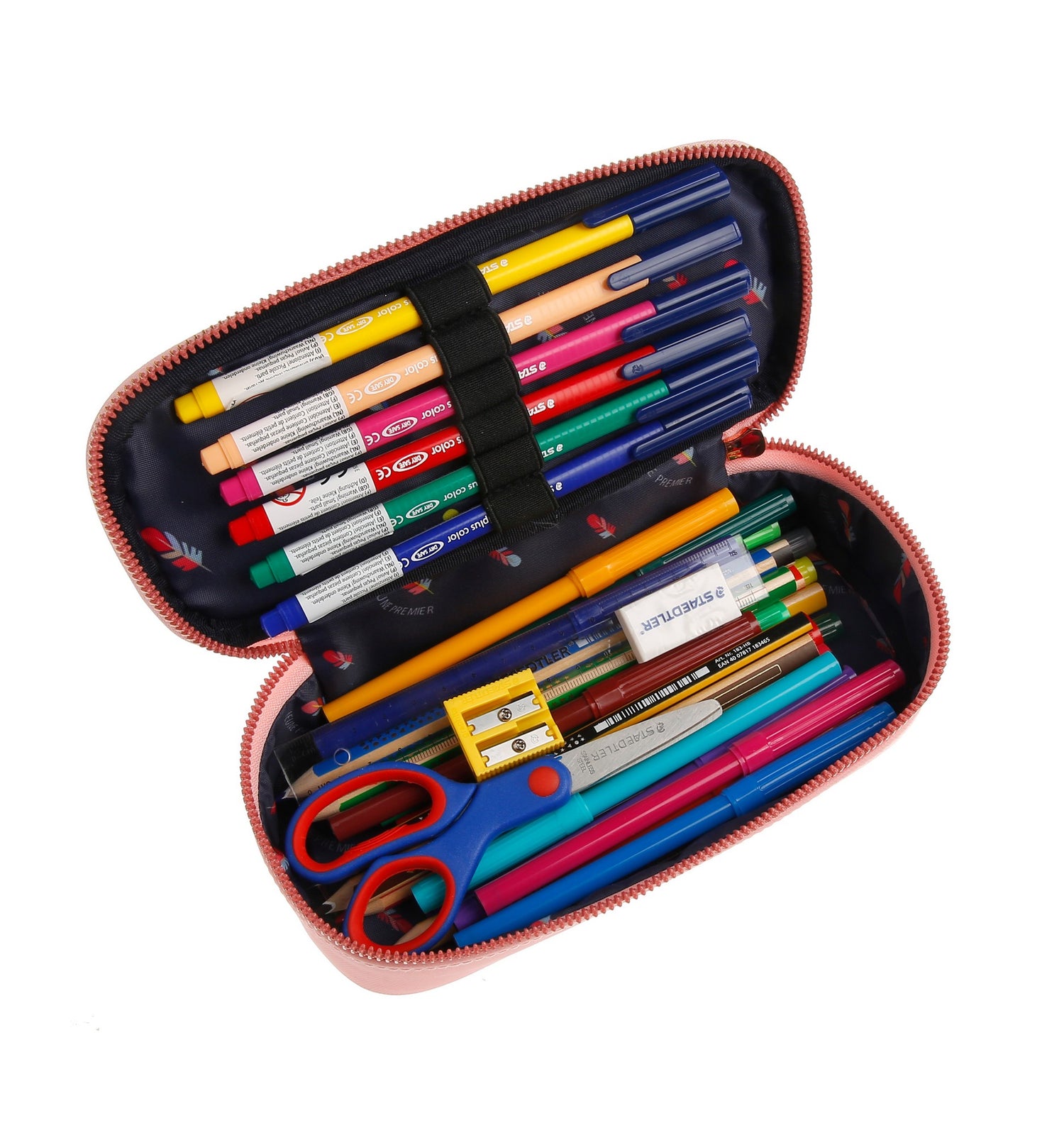 Diese Jeune Premier Federmäppchen-Box ist schön und praktisch. Bunt-, Filz-, Bleistifte, Schere, Radiergummi und alle andere Schulutensilien finden ihren Platz in dem geräumigen Hauptfach. Die Gummibänder auf dem Deckel des Federmäppchens bietet zusätzlichen Platz zur Aufbewahrung der Lieblingsstifte Ihres Kindes. Das Federmäppchen wird mit einem cleveren und kinderfreundlichen XL-Reißverschluss geöffnet. Dank des Materials aus einer Wasser- und schmutzabweisenden Beschichtung ist die Schlamperbox leicht zu reinigen. Material: 900D Polyester mit Teflonbeschichtung Futter: 900D Polyester mit Teflonbeschichtung Pflege: Mit ein wenig Wasser und Gallseife lässt sich das Federmäppchen ganz einfach reinigen! Abmessungen: 21.5 x 9.5 x 7 cm (B x T x H) Volumen: 1.4 L