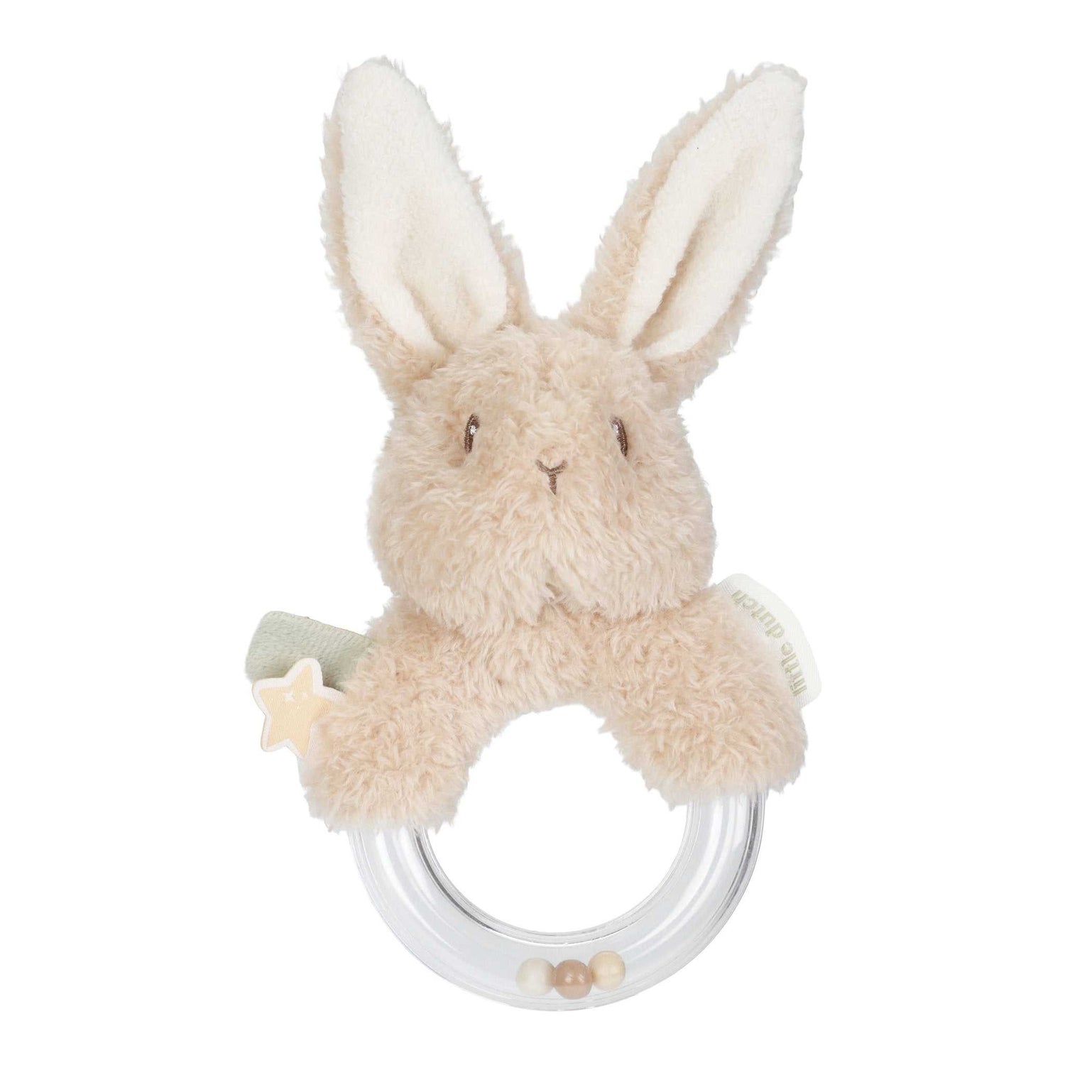 Die Ringrassel aus der Baby Bunny Kollektion von Little Dutch ist ein ideales Spielzeug, um die Neugier Ihres Babys zu wecken. Das süße Häschendesign lädt zum Greifen, Drehen und Schütteln ein. Die Ohren können gespielt werden und das weiche Fell lädt zum Streicheln ein. Der transparente Ring ist mit kleinen Perlen gefüllt, die beim Spielen rasseln und somit die Sinne des Babys anregen.