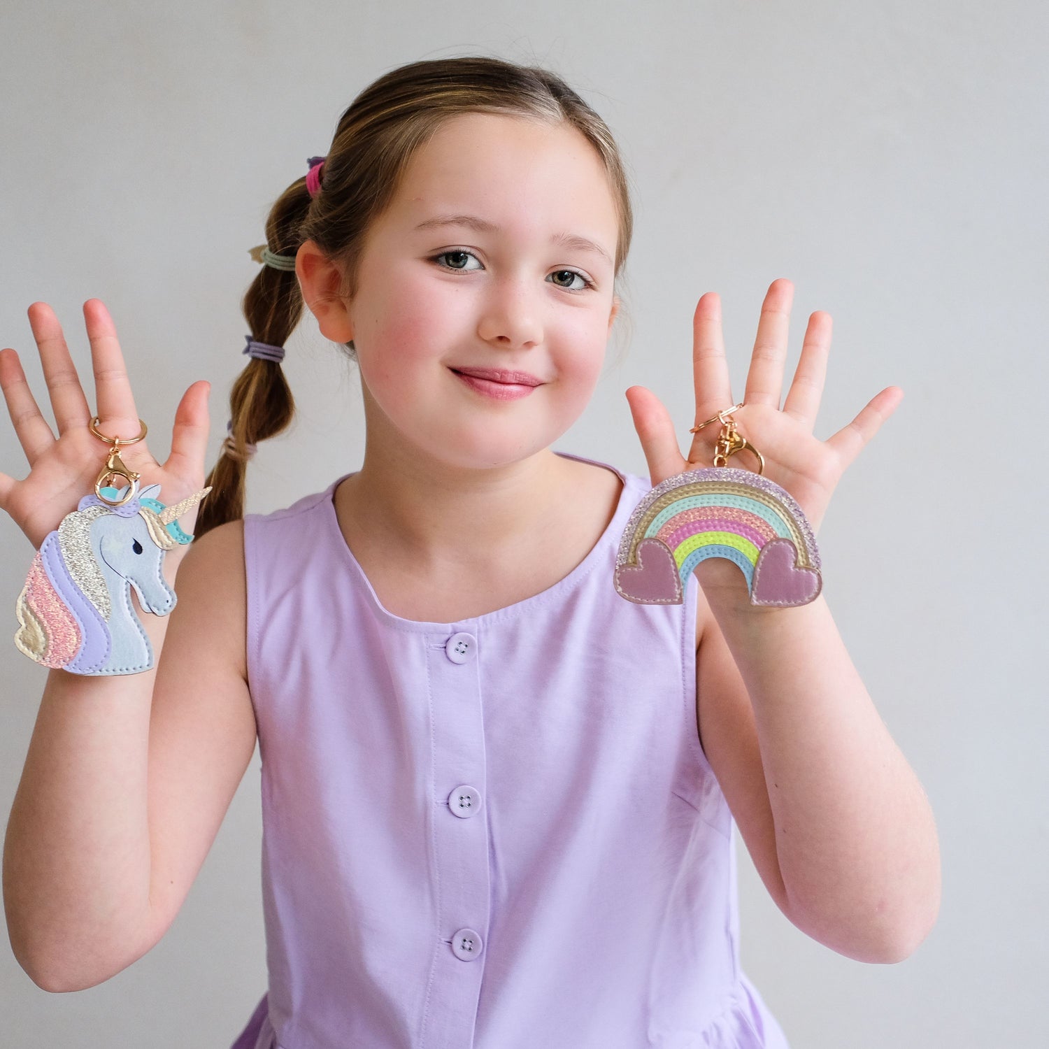 Schimmernde Glitzerdetails und sanfte Pastellfarben machen ihn zu einem süßen Hingucker – egal ob am Schlüsselbund, Schulranzen oder an der Lieblingstasche.