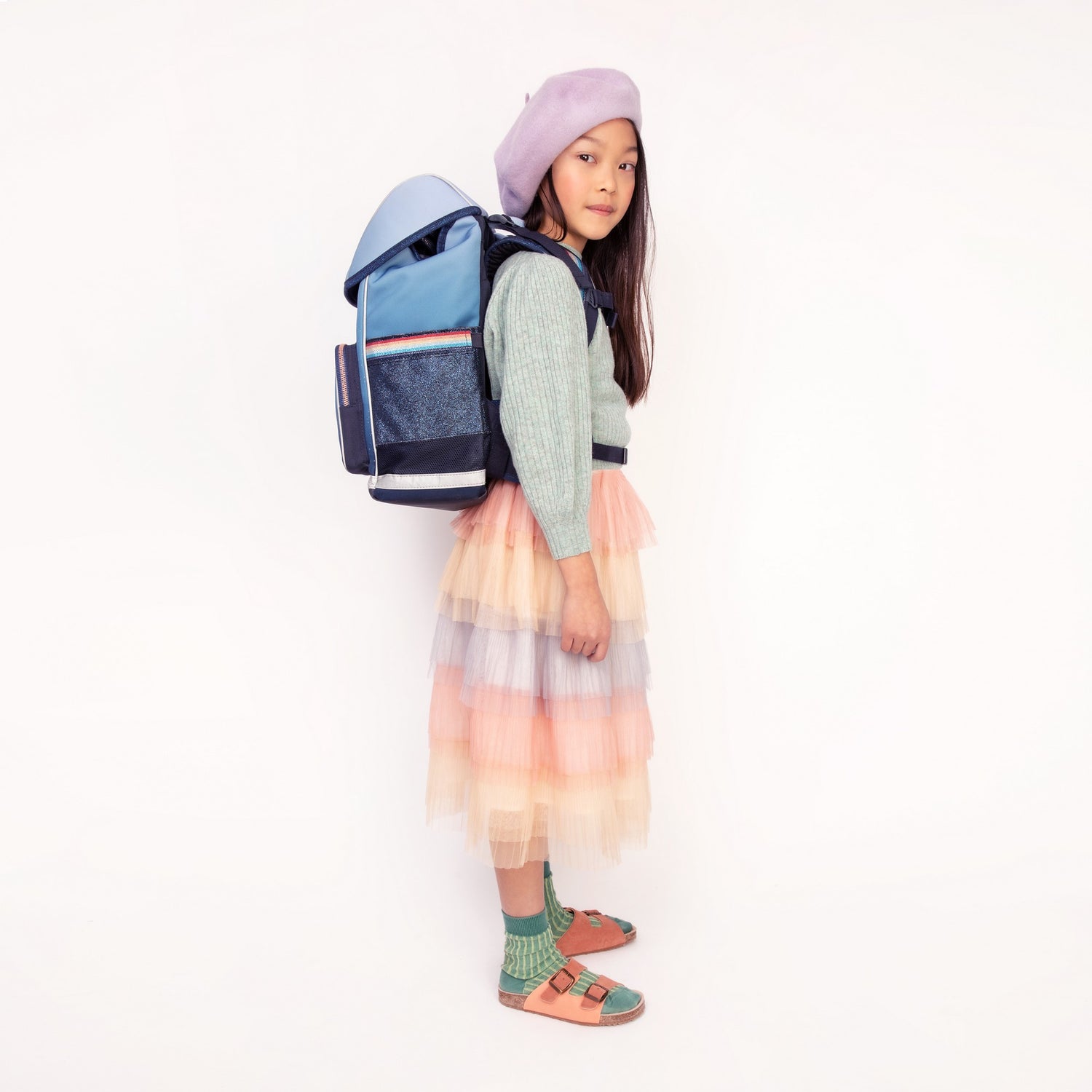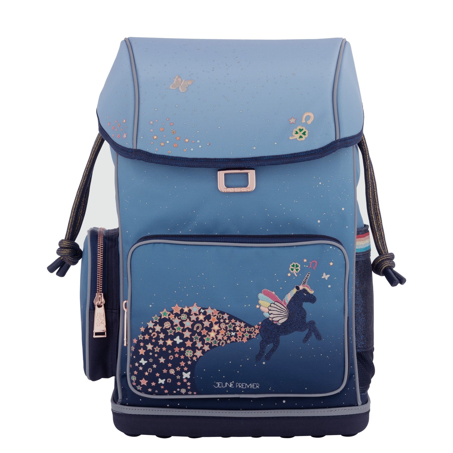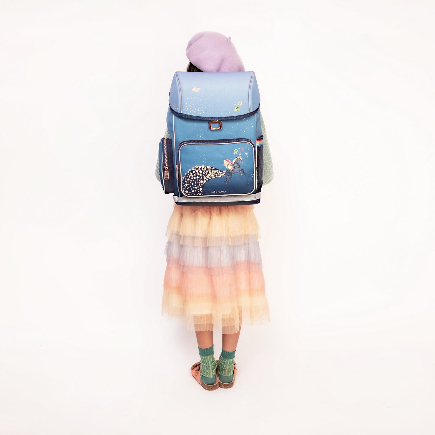 Der Ergomaxx Schulranzen von Jeune Premier wurde speziell für Kinder im Alter von 6 bis 10 Jahren entwickelt und verbindet ergonomische Innovation mit hochwertiger Verarbeitung. Das durchdachte Innenraumkonzept bietet ein geräumiges Hauptfach für A4-Ordner, Bücher und Hefte sowie zusätzliche Aufbewahrungsmöglichkeiten in Front- und Seitentaschen. Der gepolsterte und verstärkte, sowie verstellbare Hüftgurt verlagert 50 % des Gewichts von den Schultern auf das Becken und entlastet den Rücken Ihres Kindes. Das ergonomische Magnetschloss lässt sich mit einer einfachen Bewegung öffnen. Zum Schließen kann Ihr Kind die Klappe einfach nach unten fallen lassen. Der Deckel findet von selber den Weg zurück und fällt automatisch ins Schloss. Dank des verstellbaren Rückenteils wächst der Schulranzen bei einer Größe von 100 bis 150 cm problemlos mit Ihrem Kind mit. Der atmungsaktive Mesh-Rücken sorgt für angenehme Luftzirkulation, während die S-förmig geformten Schultergurte der natürlichen Rückenlinie folgen. Die Verarbeitung von hochwertigem 900 D Polyester mit Teflon- Beschichtung und die spezielle Webart sowie Stärke dieses Materials, sorgen für Robustheit, Langlebigkeit und hohen Tragekomfort, während die Teflon- Beschichtung dafür sorgt, dass der Regen einfach abperlt. Alle Produkte von Jeune Premier sind 100% vegan. Ergänzen Sie den Schulranzen mit den wunderschönen und praktischen Accessoires wie Turnbeutel, Federmäppchen, Trinkflasche und Brotdose. Volumen: 18 Liter Gewicht: 1250 g Maße: 39 x 18 x 26 cm (H/T/B) Altersempfehlung: 6-10 Jahre Pflege: mit einem feuchten Tuch reinigen
