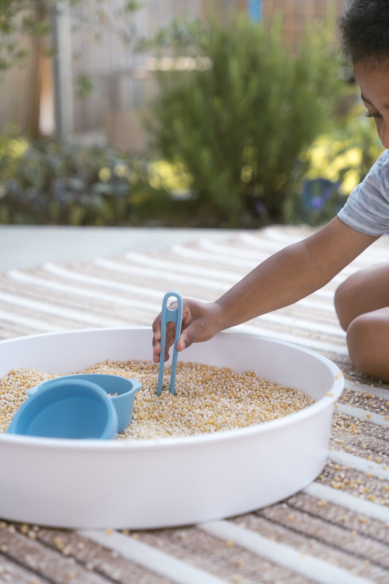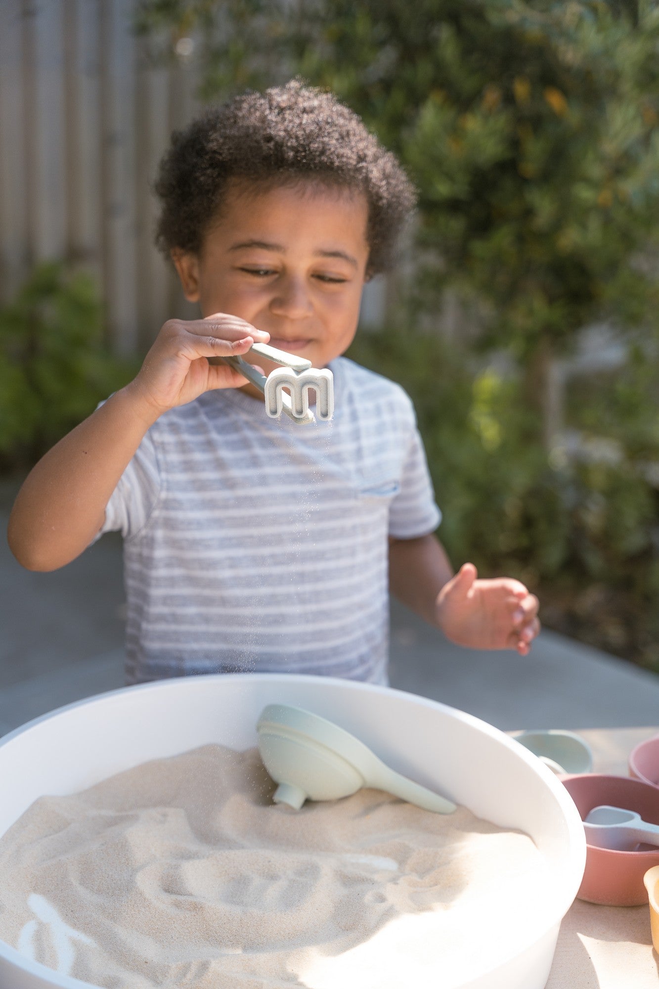 Das Inspire My Play Pinzetten-Set Green/Blue ist ein pädagogisch wertvolles Spielzeug für Kinder ab 3 Jahren. Es enthält 3 lustige Zangen, die dazu dienen, verschiedene Gegenstände wie Rosinen, Bohnen oder Sand zu greifen. Die Oberseite der Zangen ist strukturiert, um dem Kind zu helfen, den besten Griff zu finden. Die Pinzetten bestehen aus lebensmittelechtem Silikon und können sowohl zum Spielen als auch zum Essen verwendet werden. Sie sind spülmaschinenfest, jedoch wird empfohlen, sie schnell zu reinigen, wenn sie mit matschigen Materialien in Kontakt gekommen sind, um Verfärbungen zu vermeiden. Die Verwendung von Scheuermitteln sollte vermieden werden und direktes Sonnenlicht sollte ebenfalls vermieden werden, um die Zangen in bestem Zustand zu halten. Das Pinzetten-Set ist nicht nur unterhaltsam, sondern auch förderlich für die Entwicklung des Kindes. Es stärkt die feinmotorischen Fähigkeiten und fördert die Hand-Augen-Koordination. Darüber hinaus wird der Pinzettengriff spielerisch trainiert, was wichtig ist, um später Stifte richtig halten zu können. Insgesamt ist das Pinzetten-Set Green/Blue von Inspire My Play ein vielseitiges und lehrreiches Spielzeug, das das Wohlbefinden und die Lernfähigkeit des Kindes fördert. Es bietet stundenlangen Spielspaß und ist eine sinnvolle Investition in die Entwicklung des Kindes.