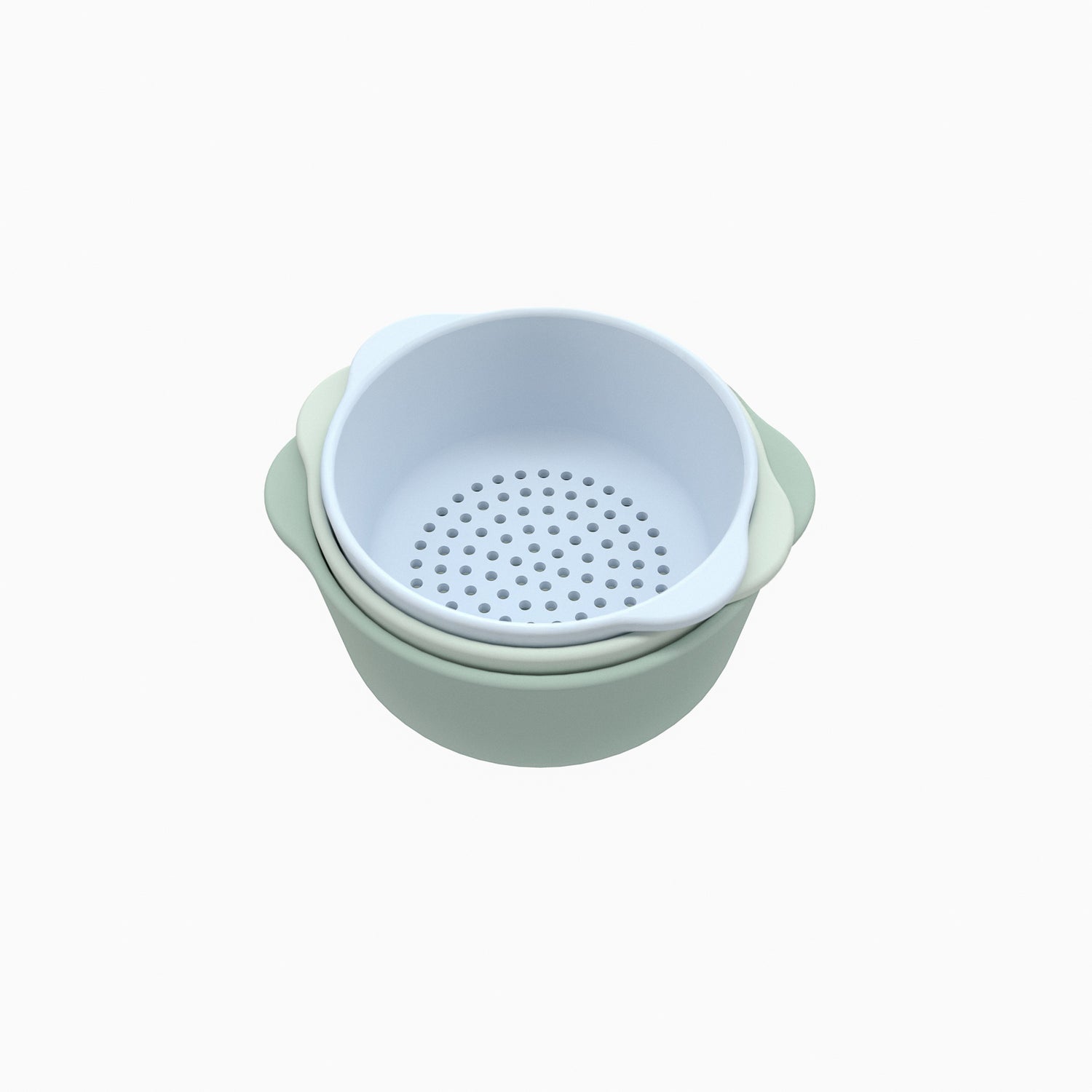 Bestehend aus drei hübschen und praktischen Schalen, darunter eine mit einem Sieb, bietet es vielfältige Möglichkeiten zum Gießen, Schöpfen und Stapeln.