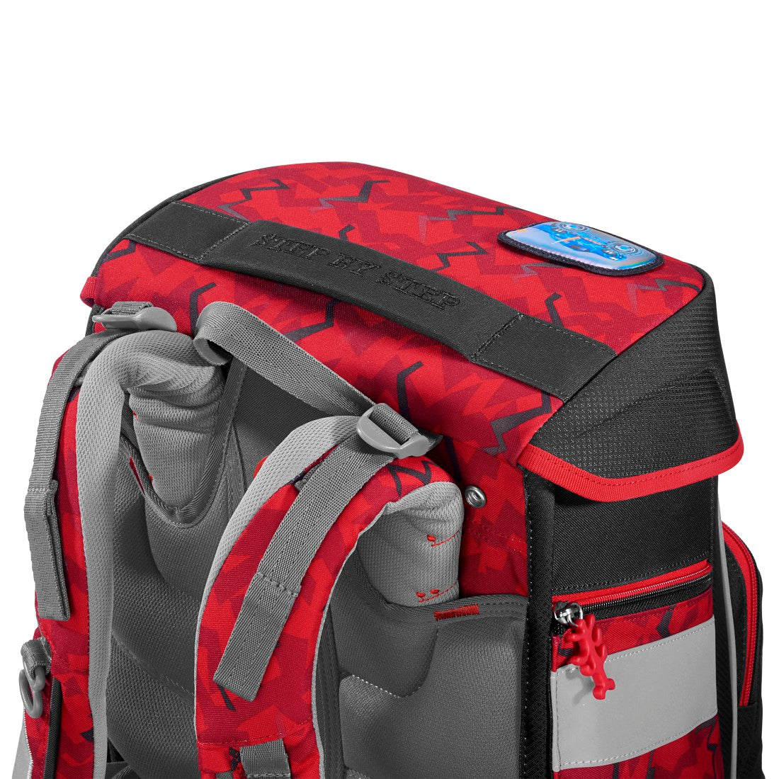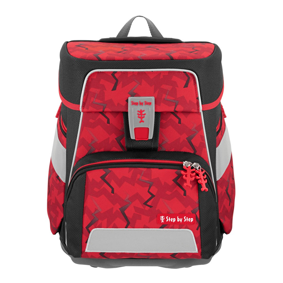 Das 5- teiliges Schulranzen-Set von Step by Step besteht aus: * Schulranzen * Federmäppchen, komplett bestückt * Schlamperetui * Sportbeutel * MAGIC MAGS (2 Applikationen und 1 Anhänger) Tragekomfort/Ergonomie: * Anatomisch geformte Schulterträger, höhenverstellbar (EASY GROW SYSTEM) * Lageverstellriemen * Höhenverstellbarer Brustgurt * Abnehmbarer Hüftgurt * Vorgeformtes, weiches Rückenpolster Verstaumöglichkeiten: * Hauptfach, Vordertasche, zwei Seitentaschen mit Reißverschluss und Auslaufösen * Gummibänder zur Fixierung des Federmäppchens unter dem Deckel * Inneneinteiler mit Gummizug für Bücher Sicherheit: * Reflektierende Elemente aus ORALITE-Material an Fronttasche, Seitentaschen und Schultergurten Weitere Features: * Leicht bedienbarer Fidlock-Magnetverschluss * Aufhängungen zum Verstauen der Enden der Schulterriemen * Aufhängeschlaufe * Tragegriff * Stundenplan im Deckel Modell: 213413 Gewicht: 1250g Größe: 37 x 28 x 20 cm (H/B/T) Gesamtvolumen: 20l (Hauptfach: 15,5l, Seitentaschen: 3l, Fronttasche: 1,5l) Material: Polyester mit 100% PFC-freier und bluesign-zertifizierter Beschichtung, Textilien zu 100% aus recycelten PET-Flaschen