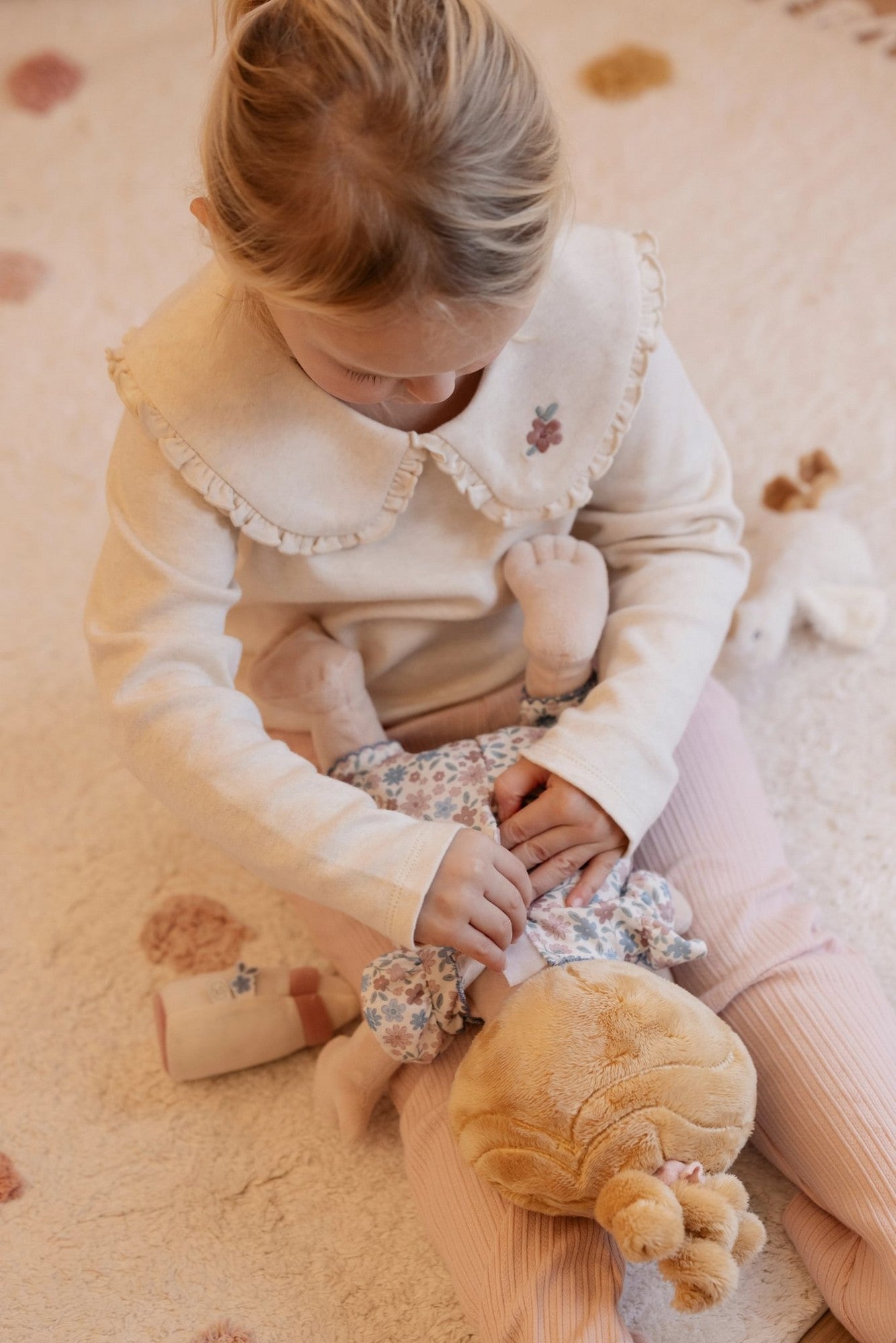 Lerne Julia kennen, eine weiche Kuschelpuppe, die gerne mit dir spielt und schmust. Mit ihrem süßen Strampler, der Windel mit Klettverschluss und dem niedlichen Gänschen macht das Versorgen und Kuckuckspielen besonders viel Spaß. Dank der Magneten in ihren Händchen und dem Fläschchen kannst du sie wirklich trinken lassen und gemeinsam die schönsten Abenteuer erleben. Artikel: LD4680 Material: Polyester Altersempfehlung: ab 12 Monaten