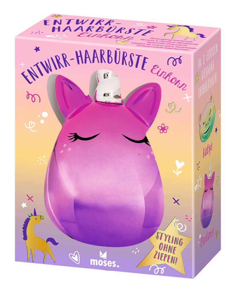 Diese liebevoll gestalteten Entwirr-Haarbürsten im Einhorn- oder Katzen-Design von Moses machen das tägliche Kämmen zu einem echten Highlight.