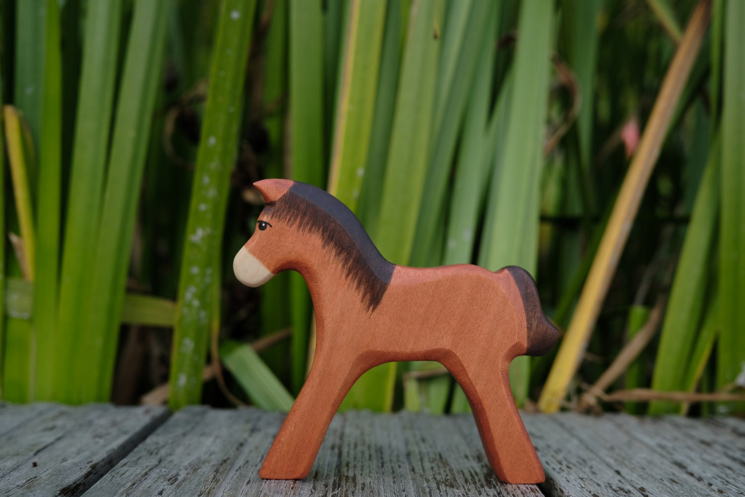 Das niedliche Fohlen hat das gleiche rötlich braune Fell wie seine Mama. Es ist sehr neugierig und verspielt und begleitet seine Mama überall hin.