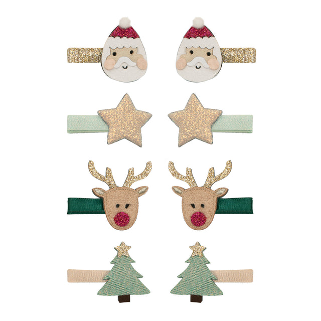 Acht winzige Clips von Mimi & Lula in einer festlich-fröhlichen Farbkombination aus Rot, Grün und Gold – einfach perfekt, um jeden Look weihnachtlich aufzupeppen!