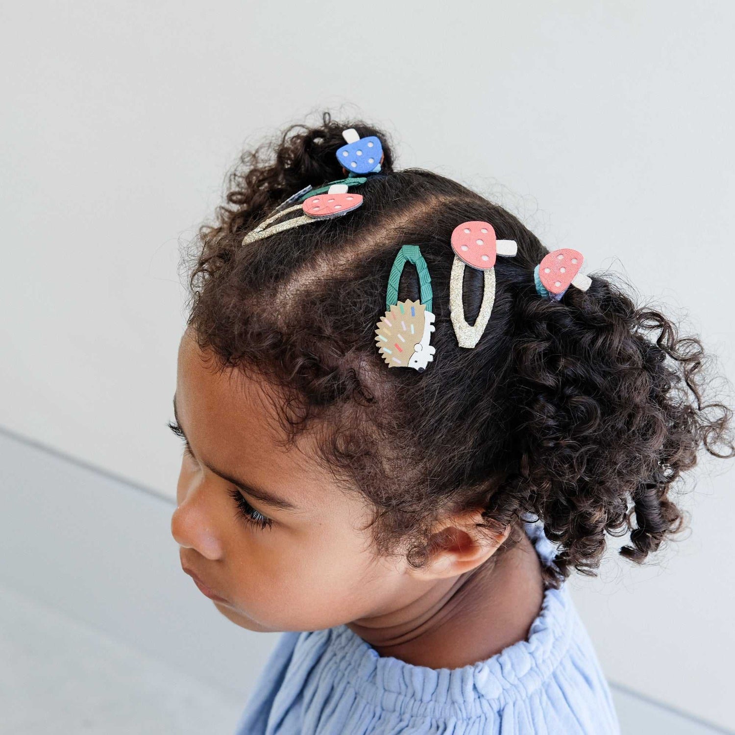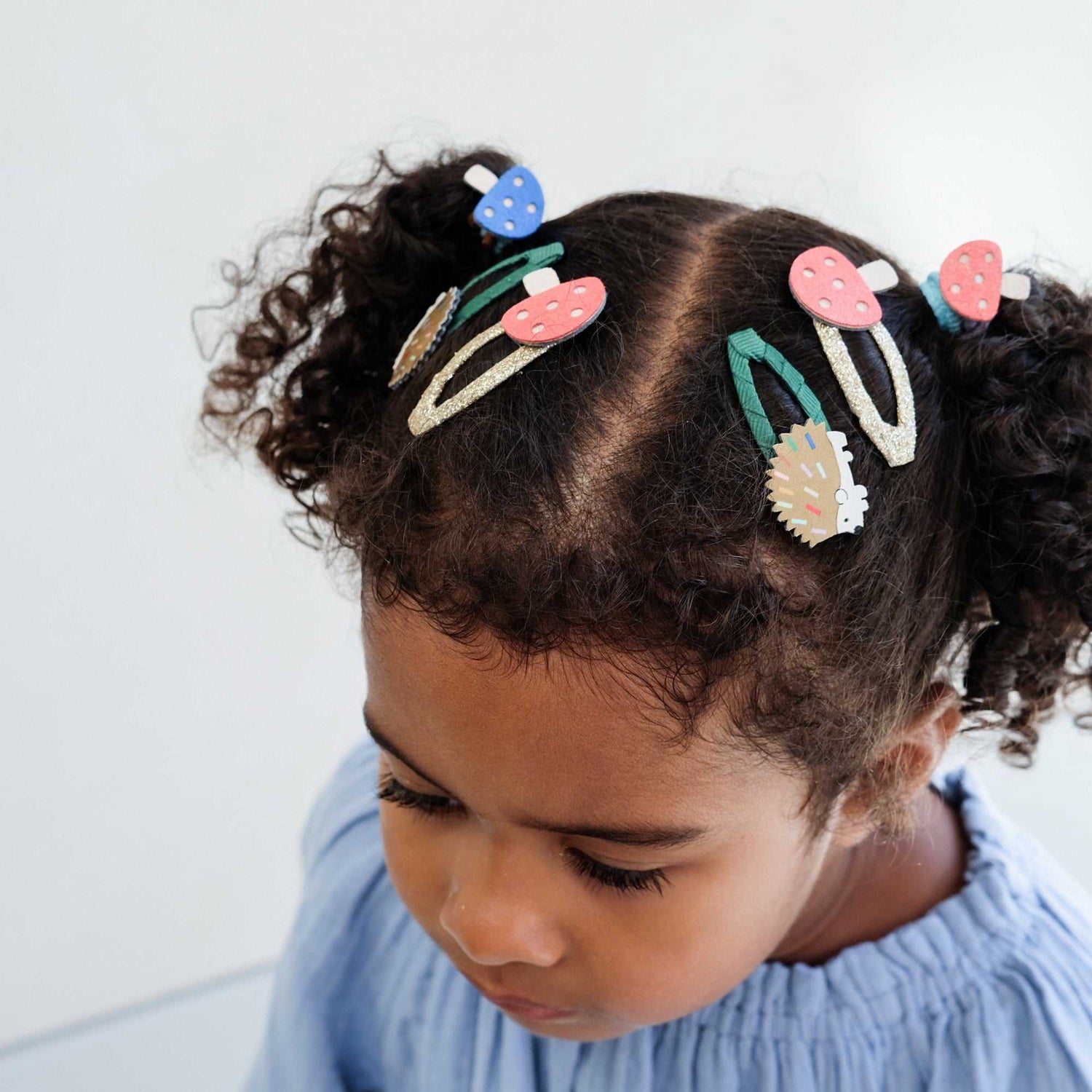 Die bezaubernden Haarspangen Harry Igel von Mimi & Lula, mit bunten Stacheln und zwei tollen kleinen Märchenpilzen, versüßen kleinen Kinder den Start in den Tag und sorgen dafür, dass die Haare beim Spielen nicht stören.