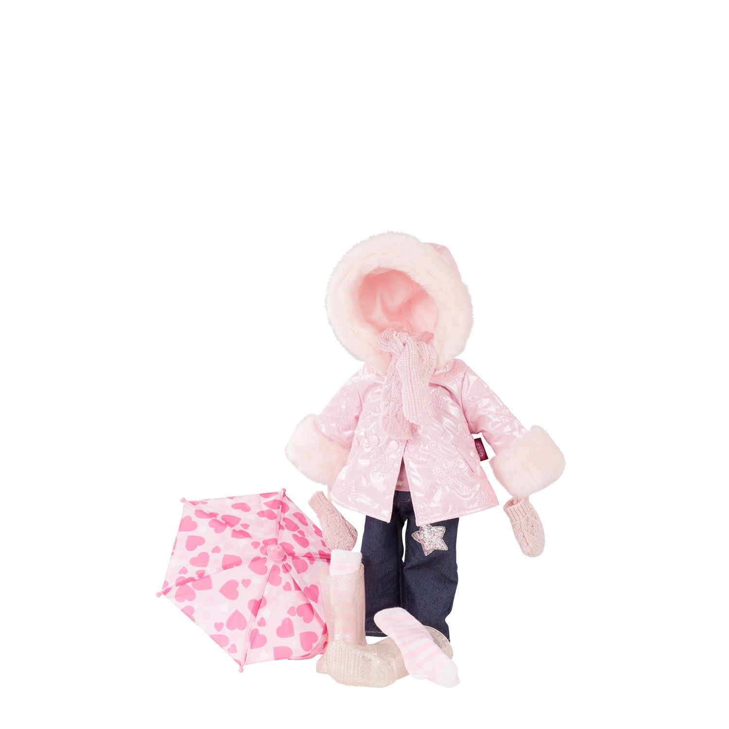 Hannah aus der zauberhafte Puppenwelt der Firma Götz. Mit der Stehpuppe Hannah einmal durch alle Jahreszeiten. Sie hat für jede Jahreszeit das pasende Outfit dabei. Ihr Körper aus Vinyl, sie kann fest stehen und ist beweglich sowie posierbar. Das hochwertige Haar ist in den Puppenkopf eingenäht und ist somit sehr strapazierfähig. Das Haar kann gewaschen, gekämmt und frisiert werden, hier kann Ihr Kind seiner Kreativität freien Lauf lassen. Im Lieferumfang enthalten sind: Puppe, wattierte Jacke, kuscheliges Shirt, Jeans, Gummistiefel, Strümpfe, Schal, Handschuhe, kurze Latzhose, Badeanzug mit Gürtel, Sandalen, Regenschirm und eine Basttasche. Modell: 1959093 Größe der Puppe: 50 cm Altersempfehlung: ab 5 Jahre ACHTUNG: Nicht geeignet für Kinder unter 3 Jahre. Erstickungsgefahr durch verschluckbare Kleinteile.